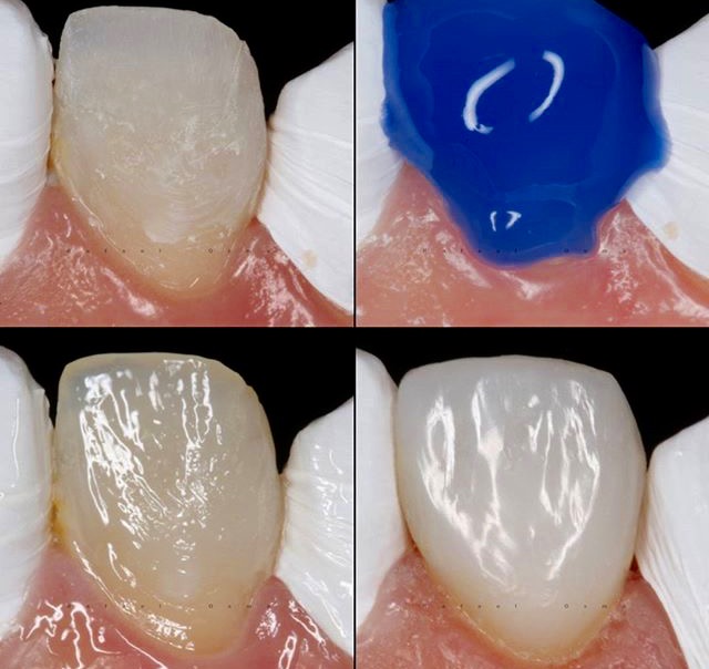 A ceramic veneer consists of a porcelain sheet that partially covers a tooth, by way of veneer, to which it is attached by means of mechanical-mechanical adhesives after enamel etching. The adhesion of the porcelain veneers to the tooth.