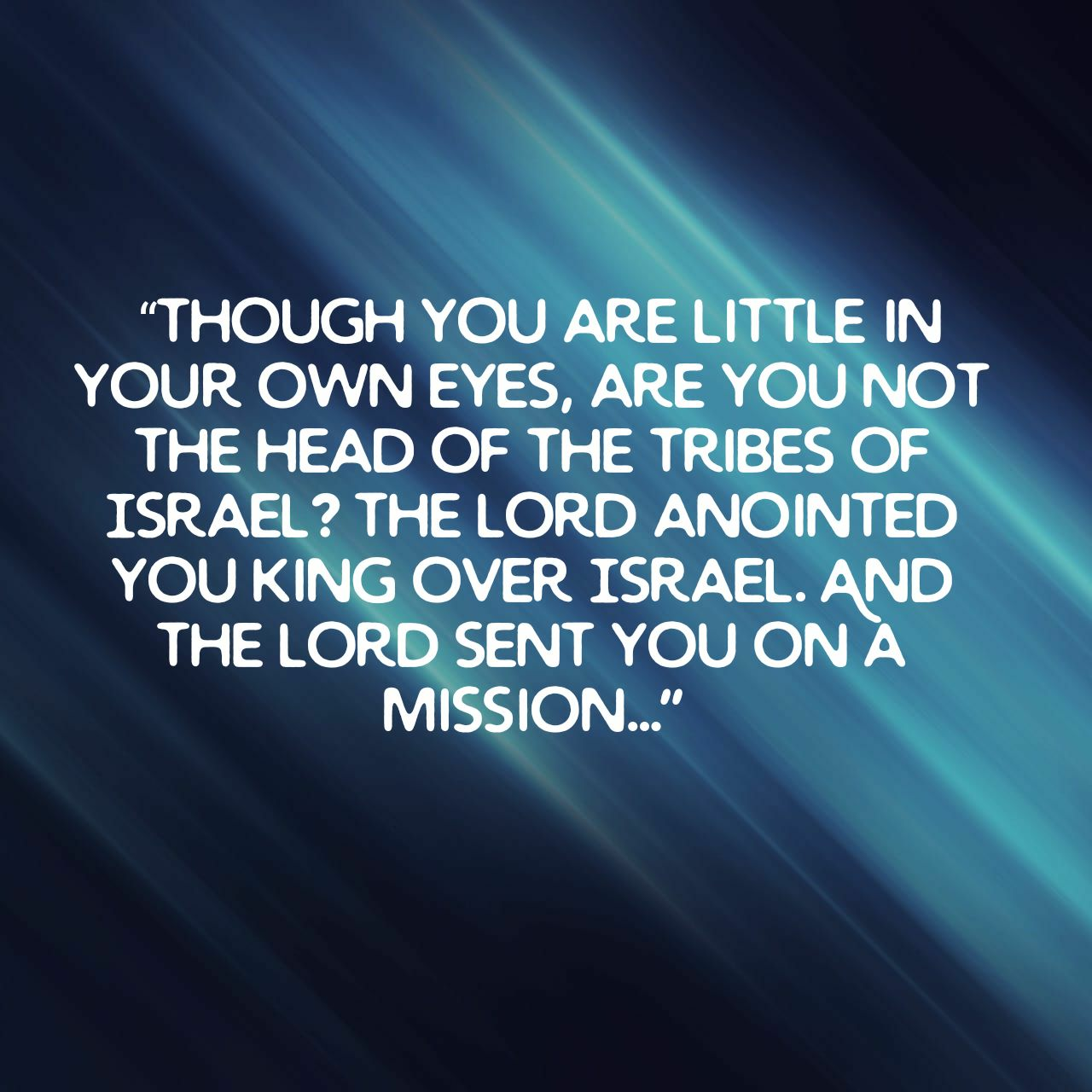 In response to this bitter truth, God’s love is so overwhelming. Samuel stopped Saul talking and said, “Though you are little in your own eyes, are you, not the head of the tribes of Israel? The LORD anointed you as a king over Israel...” He reminded Saul of whom he was. He reminded him that he was unworthy of all that he has at the moment, yet called to be one. At times we failed God - there is still a chance to take unless we consider it as a chance to change. This is a chance not to preserve our reputation, but our relationship to the One who called us.