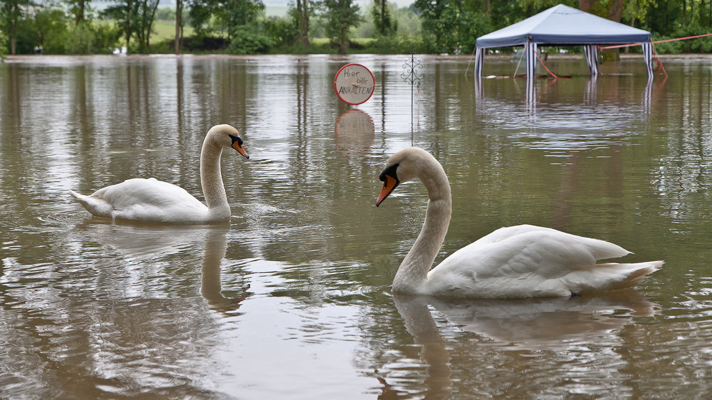 two swans are flirting