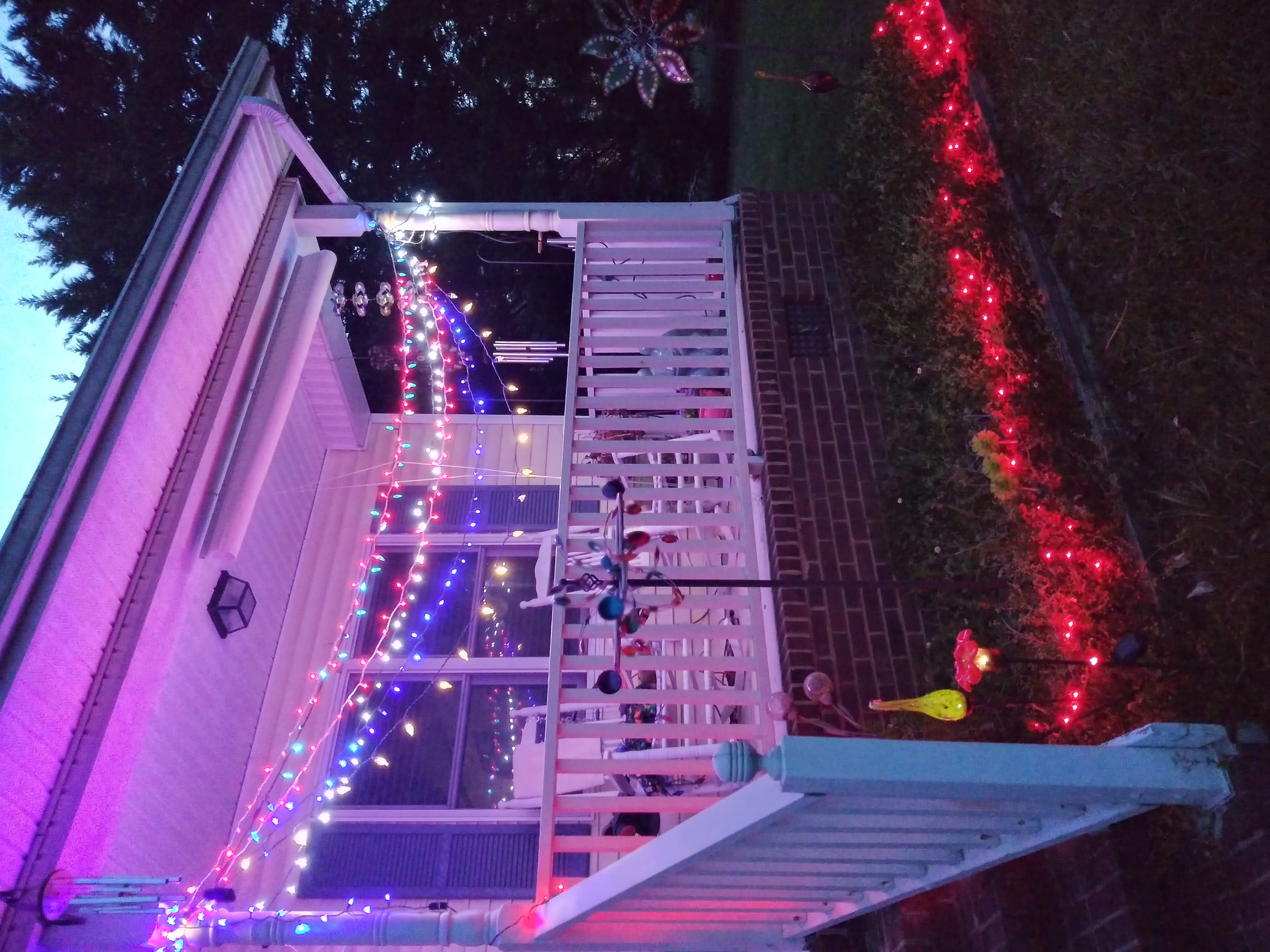 With that in mind, as I was working yesterday afternoon, (at home of course), I thought I needed to do something bright and cheery for myself and others. We are homebound now, except for essential outtings. I don't have a big problem with that as I am a self proclaimed semi-recluse anyway. I had heard there were some people that were putting up Christmas lights as an upbeat sign during the downbeat times.
