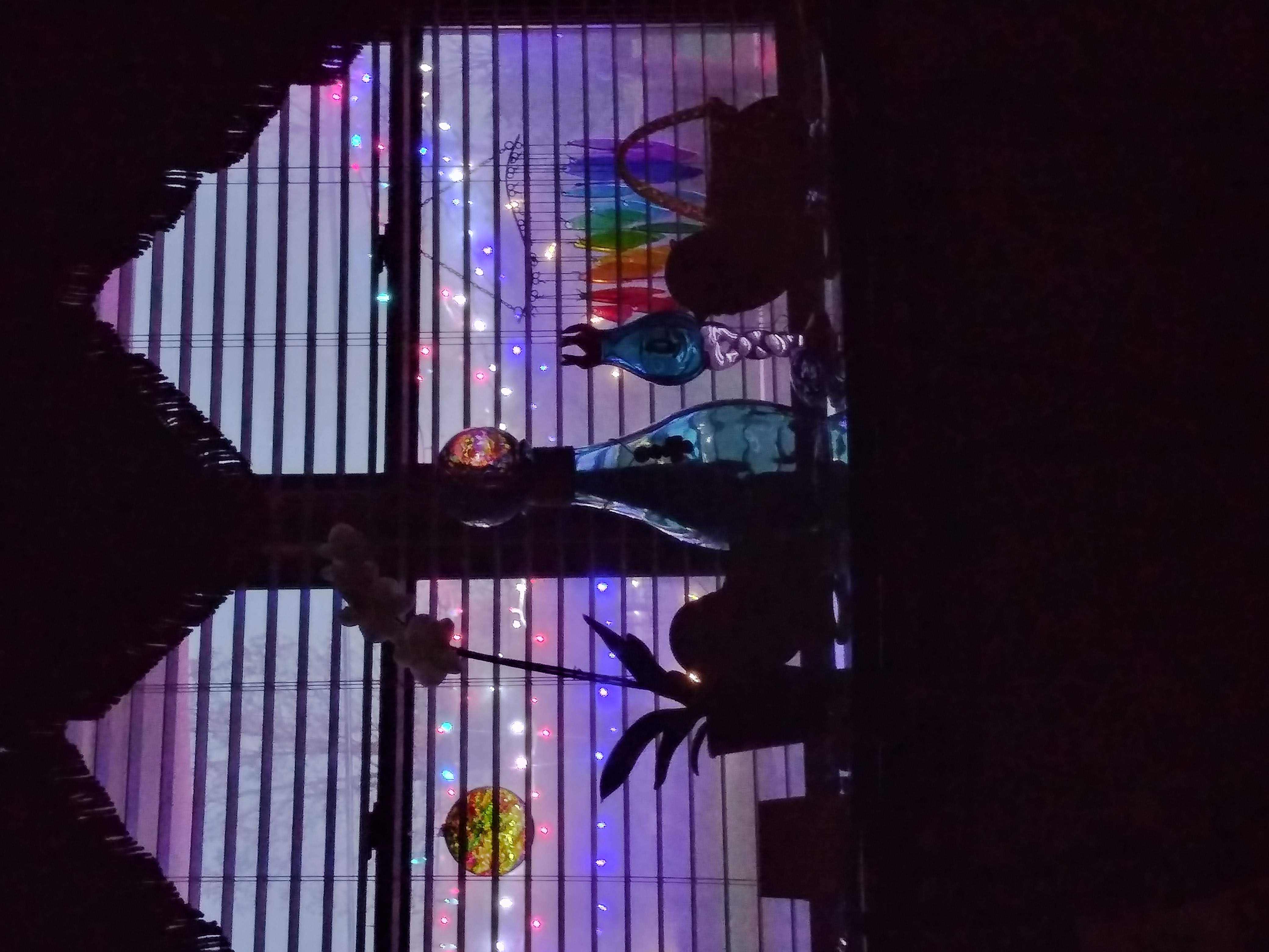 They are somewhat randomly hung, but when it got dark, they were an amazingly happy sight. I left my blinds open most of the evening so I could also enjoy them from the inside as I watched TV and art videos.