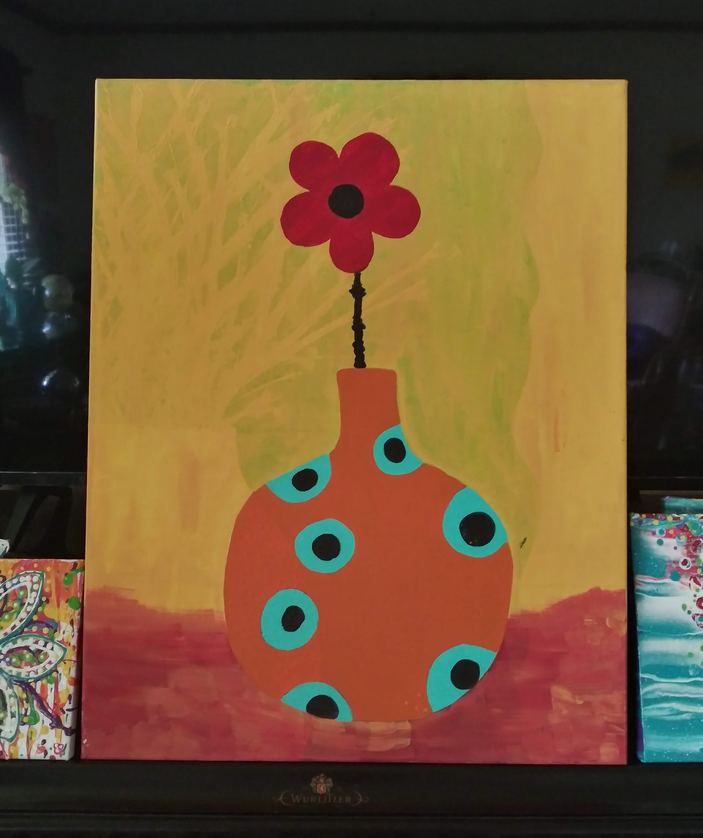 I have a bunch of unfinished art in my backroom, some finished art too, but it is so cluttery in there I can't really tell what all I have anymore. LOL !! Silly.... right ? Anyway, a few weeks ago I was looking for a photo of something else and came across a photo on one I had never finished. It was kind of fun looking, but at that moment, I thought it was one I didn't finish and painted over and I was sorry for a moment I had done that. When the day came I needed to clear a corner for my incoming work desk, I was moving things around and.... happily I found that I had indeed NOT painted over it, so I brought it out to my living room where I can see it and ponder on what else I might do to it to finish it. It is about a 22 x 28... so not a small thing. I know it needs something else.... or I think it does, but I am also afraid to touch it....in fear I could send it off in a bad direction. Anyway, it's making me happy to see it out here. Time will tell what happens to it.