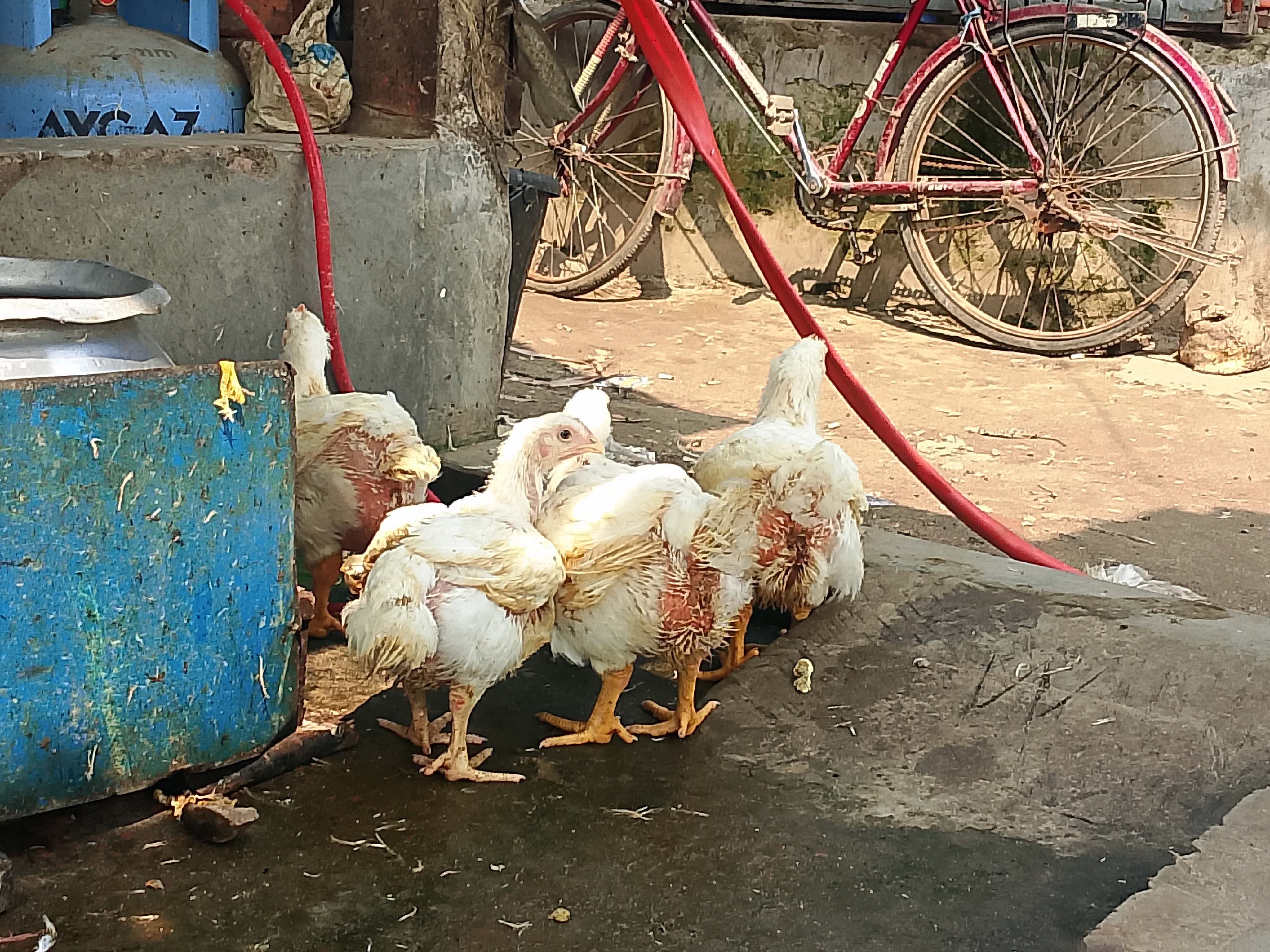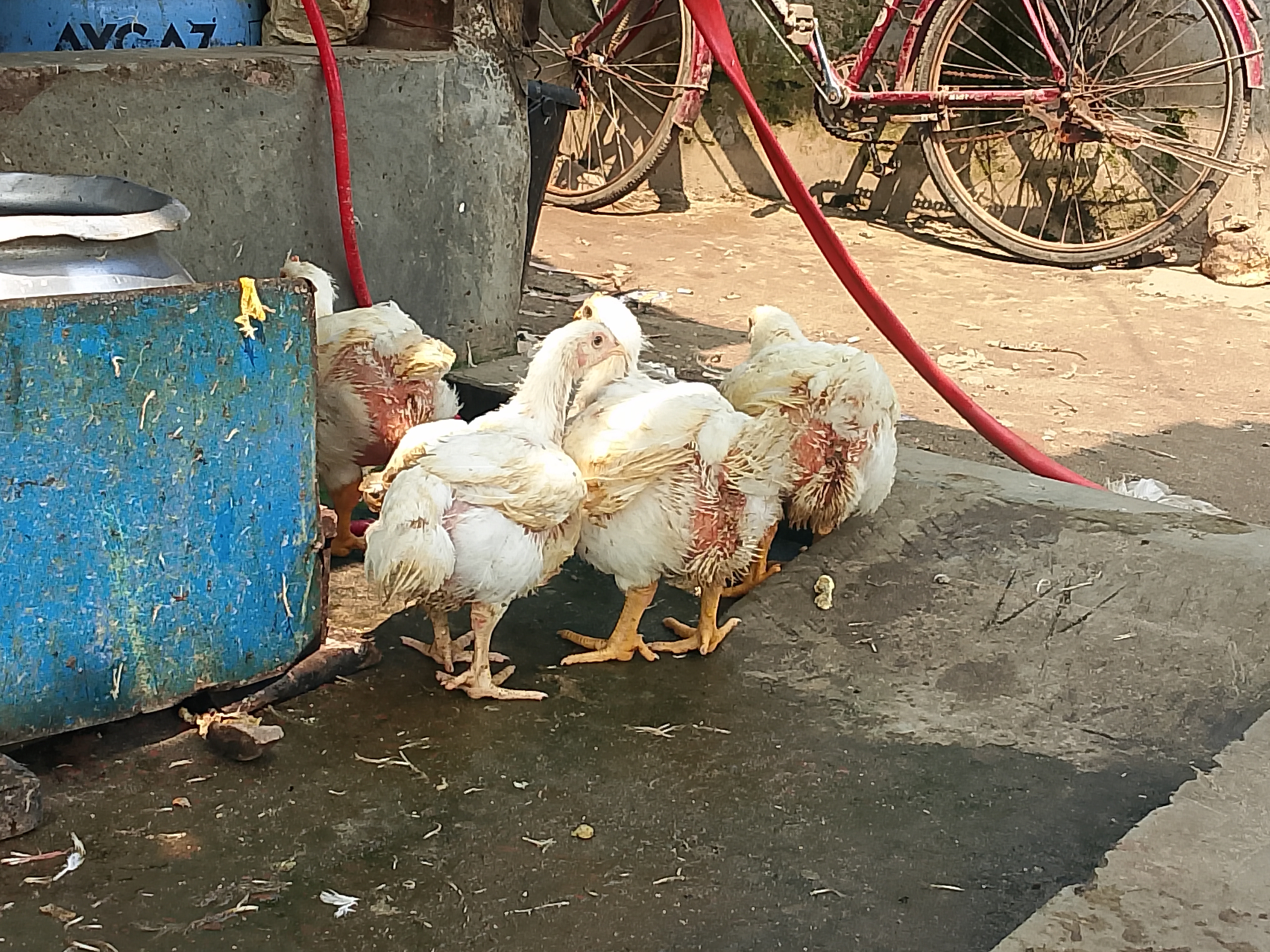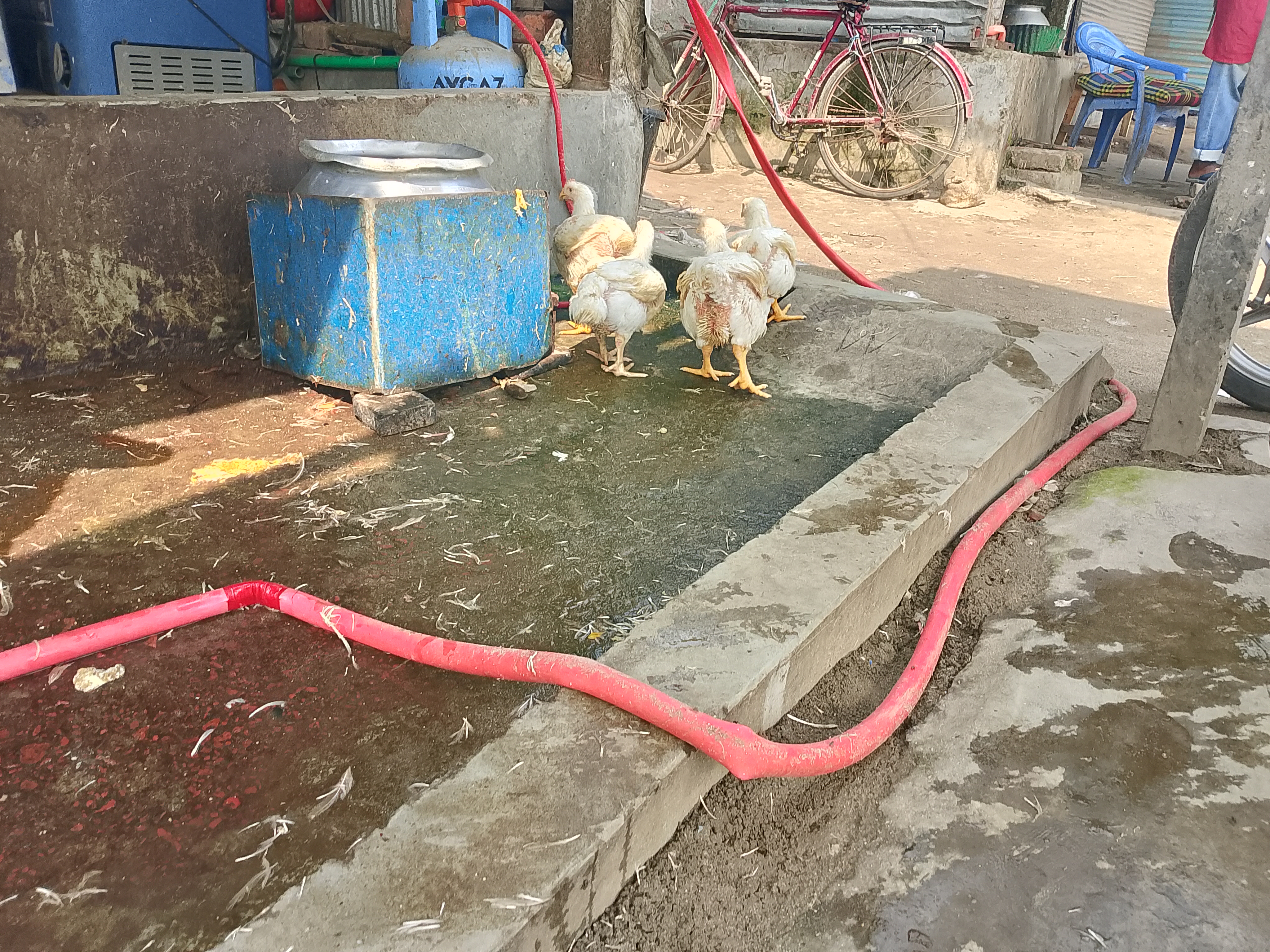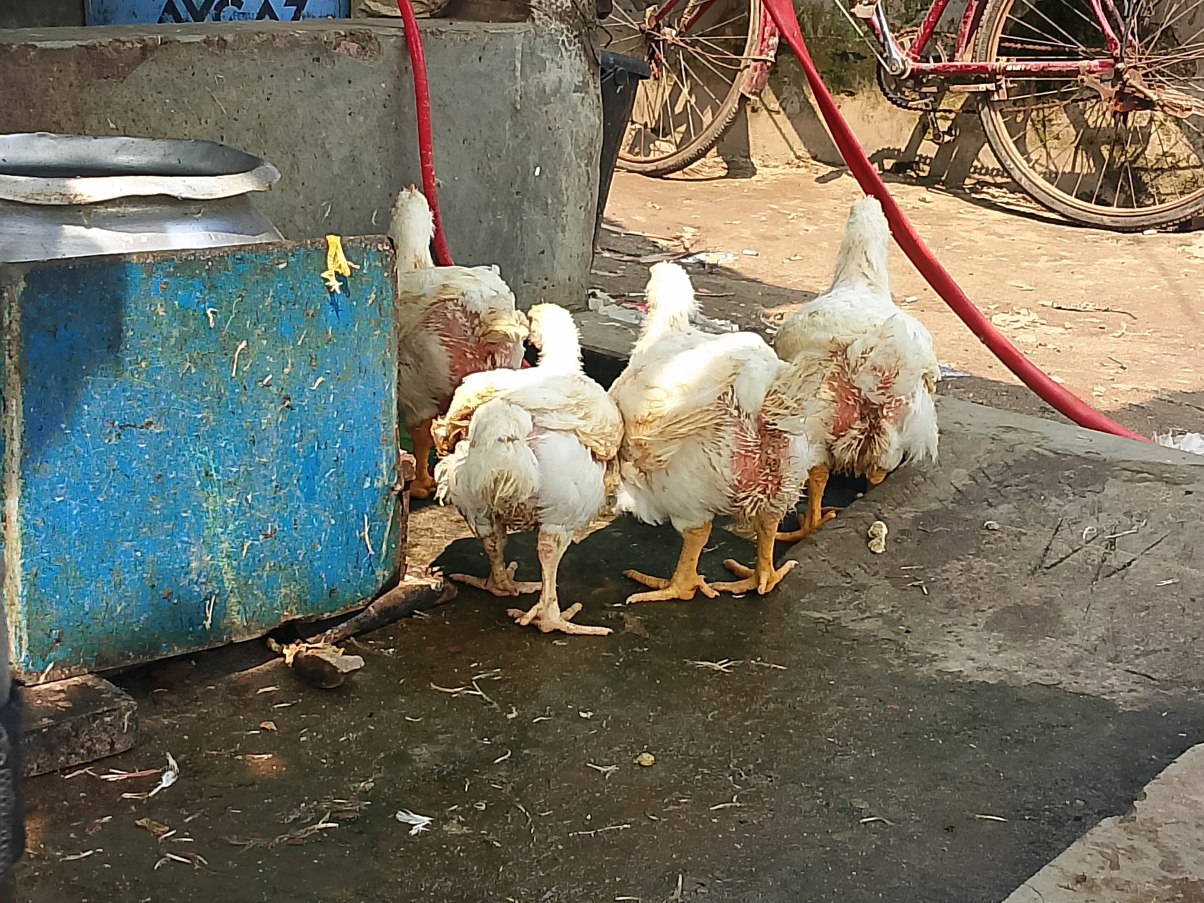 White broiler chickens are kept here. These broilers will be cut and sold. Each of these large broilers weighs about 4 to 5 kg, and they are sold in large quantities in the market.