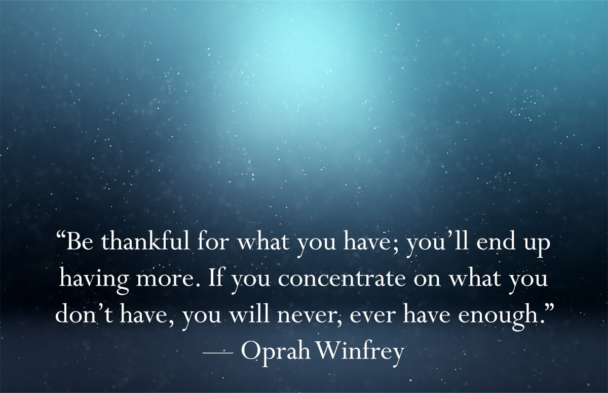 If you were wanting a new car, you could remind yourself that there are plenty of people who have NEVER been able to afford a vehicle of any sort and if they had the car you were frustrated with, they would be enormously grateful – to them, it would be the equivalent of a Ferrari!