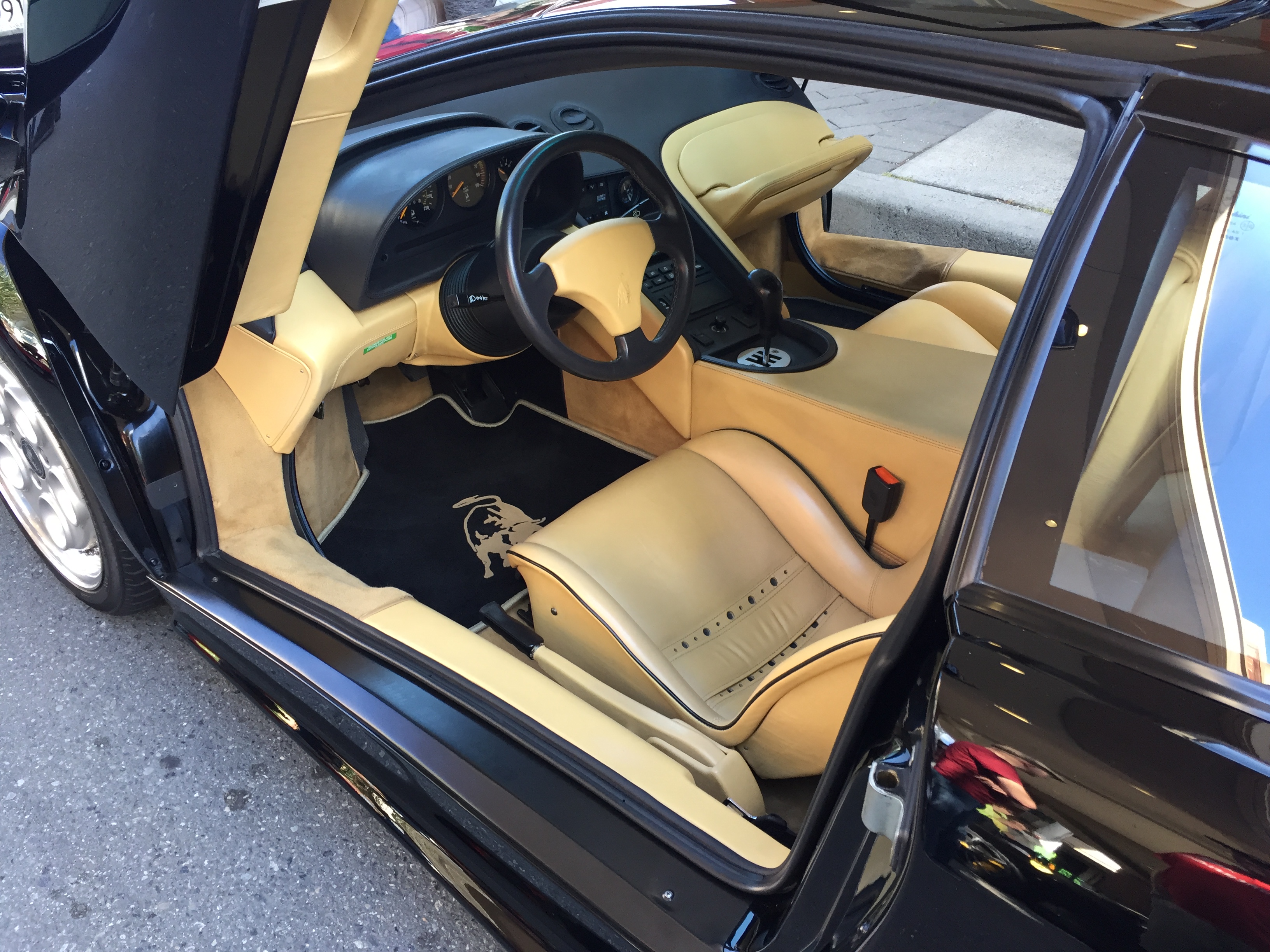 Wow, seeing s many new and classic exotics in one place must be a great exprience. The black Diablo sure looks well-kept, although I'm not sure if I'm feeling the beige center of the steering wheel.