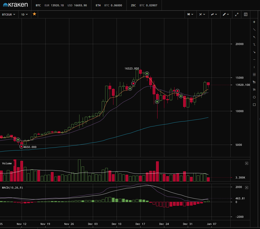 The second green dot on that red candle with the really long wick should have taught me a lesson but for better or worse it didn't. My account had ninety Euros left and i got it on BTC... on times five leverage (really). I almost wish the market had tumbled and kicked me out of that position the same day. Perhaps I would have learned the much needed lesson once and for all.