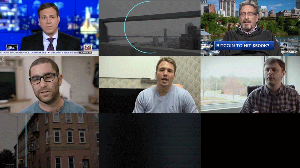 Most people hear about cryptocurrency for the very first time through sound bites and sources like CNN, interviews with familiar figures like John McAfee and so on. Our goal with this introductory sequence was to lure viewers in through the controversial clips they are used to seeing and then pivot the conversation to something much more familiar on a community level.
