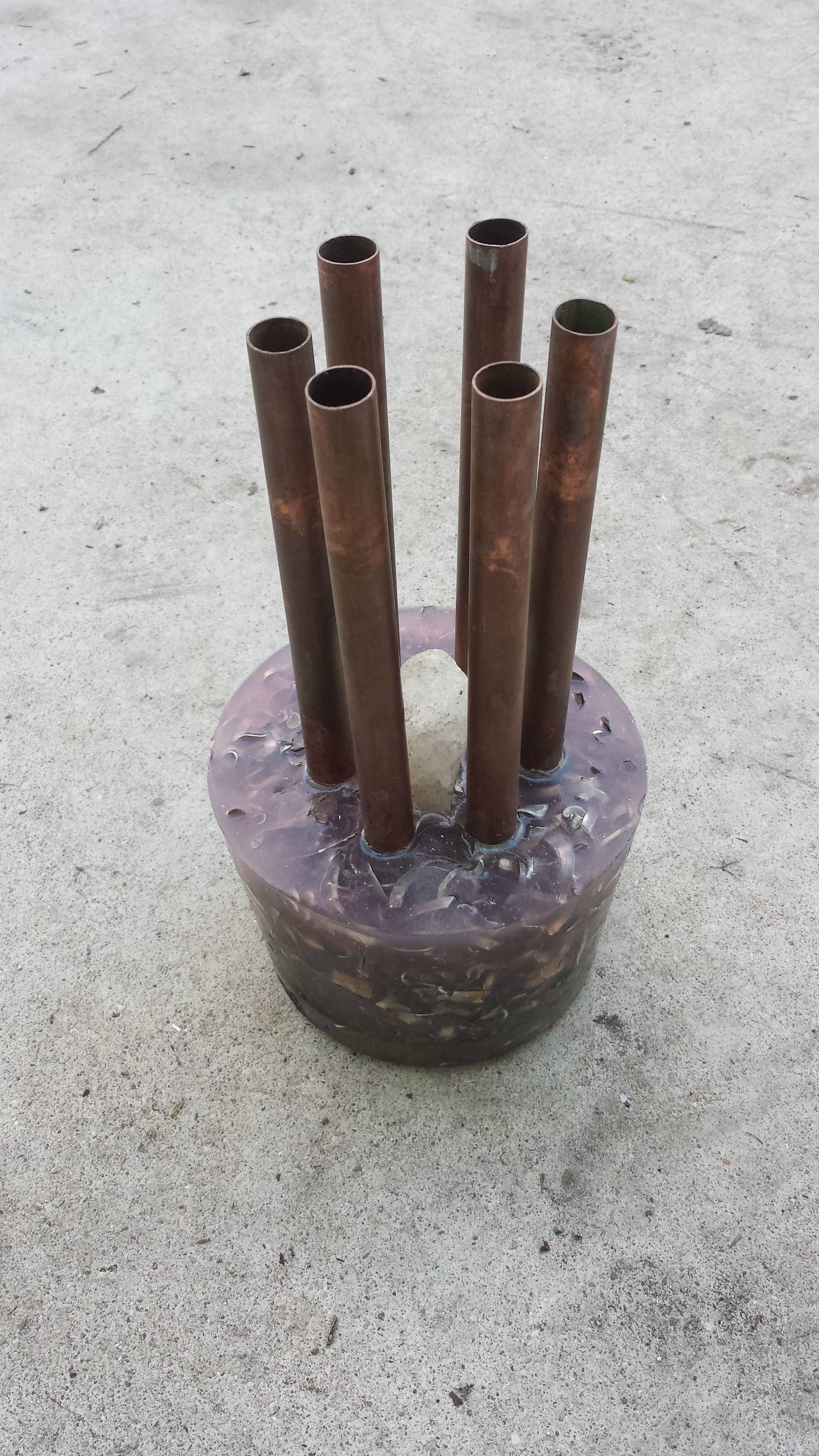 Copper pipes; 6 of them for this one i used half inch and about four foot pieces and small pieces that will stick in the resin