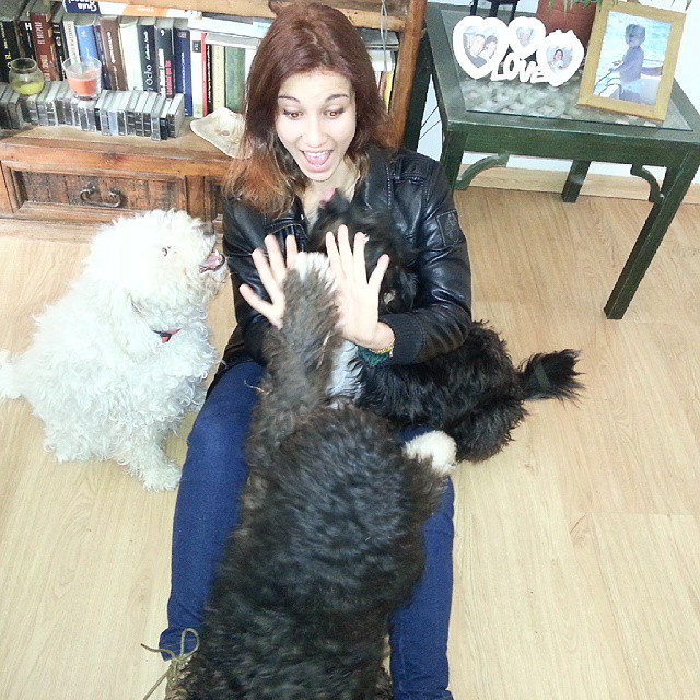 She is smart too, but her special quality is that she hates when peaople shouts o when people argue, when Mou and Iker argue,... She hates loud noises and bad behavious. I also think she suffered a lot before I found her. Imagine... When I start to talk louder when arguing with my mother, Cristi inmediatly tries to catch my attention and doesn't let me continue being mad. She may be perfect for therapies I think.