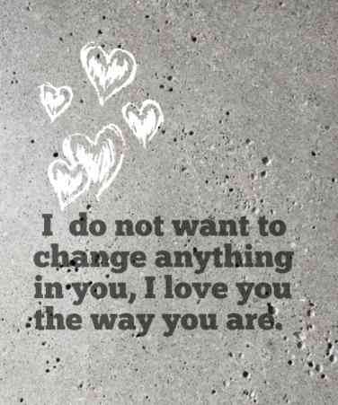 Many will want to change you. Try to make you what they imagine you should be. Most people do not understand that every person is for themselves. Each person is unique. But he will not want to change you because he is with you just because of what you are.