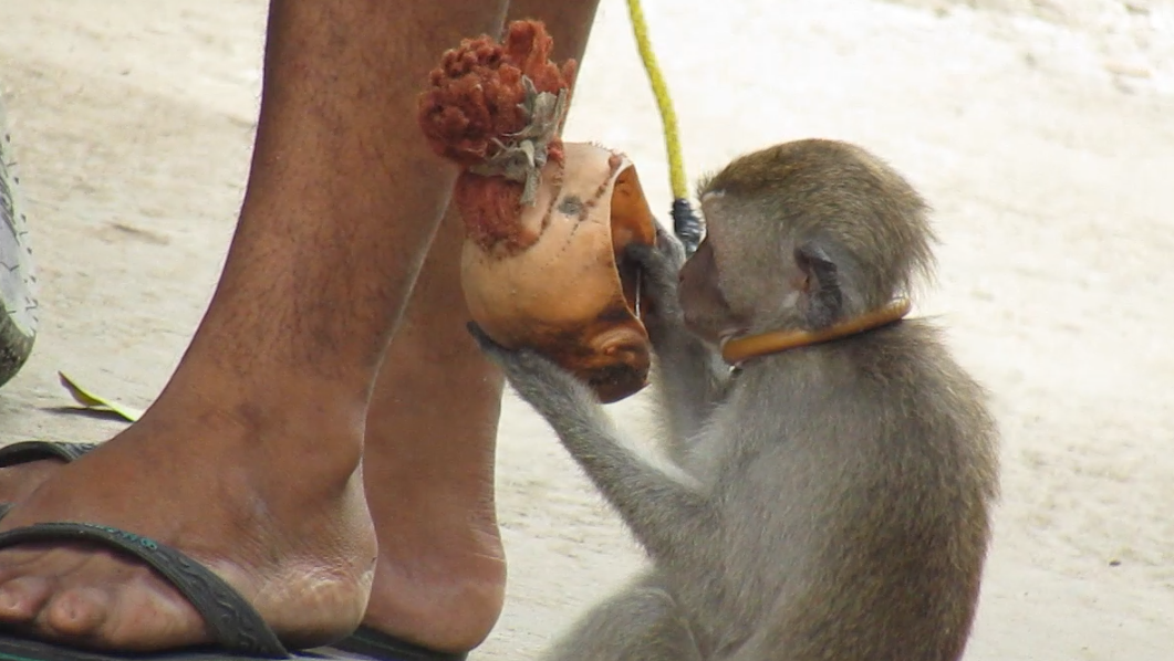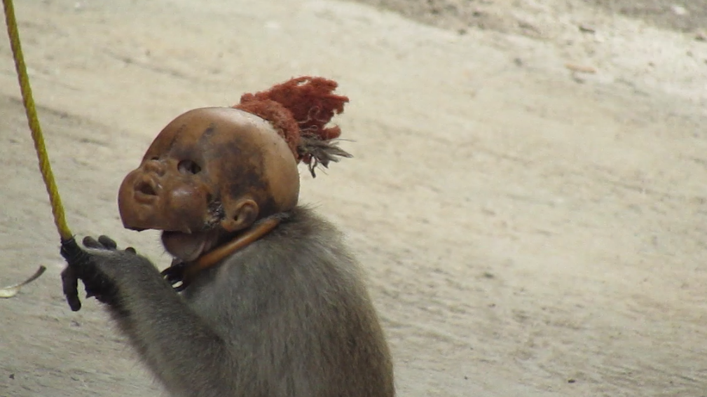 인도네시아에는 비공식 직업이 있습니다. 그것은 "토펑 머니엣"이라고 합니다. Topeng은 가면을 의미하고 monyet은 원숭이를 의미합니다. Topeng monyet은 훈련된 원숭이의 곡예 매력과 함께 버스킹 활동의 일종입니다.