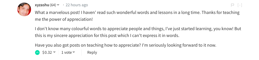 As I said in the last two lines of my comment which you copied here, people sadly forget their former situation once they have shifted out of it. What I mean by that is that those who beg for upvotes and followers yet remain unrequited, are then again not aiming at doing it different once they are suddenly "rich". So when I was begging for it all the time and then suddenly get to that which I want in some way, and then again find that someone is begging in front of me, shouldn't we then remember that we also were in that situation back then?