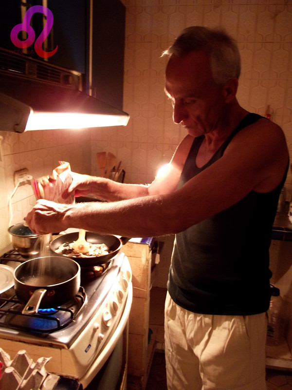 Él es Rocco Mangieri, en el momento era uno de mis profesores en la Escuela de Artes Escénicas. Está en este trabajo porque a pesar de ser un hombre solitario es terriblemente enamorado y quería compartir esta imagen de un hombre que sin ser Chef siente una auténtica pasión por la comida y cada preparación es un ritual. #QueVivanLosHombresQueCocinan