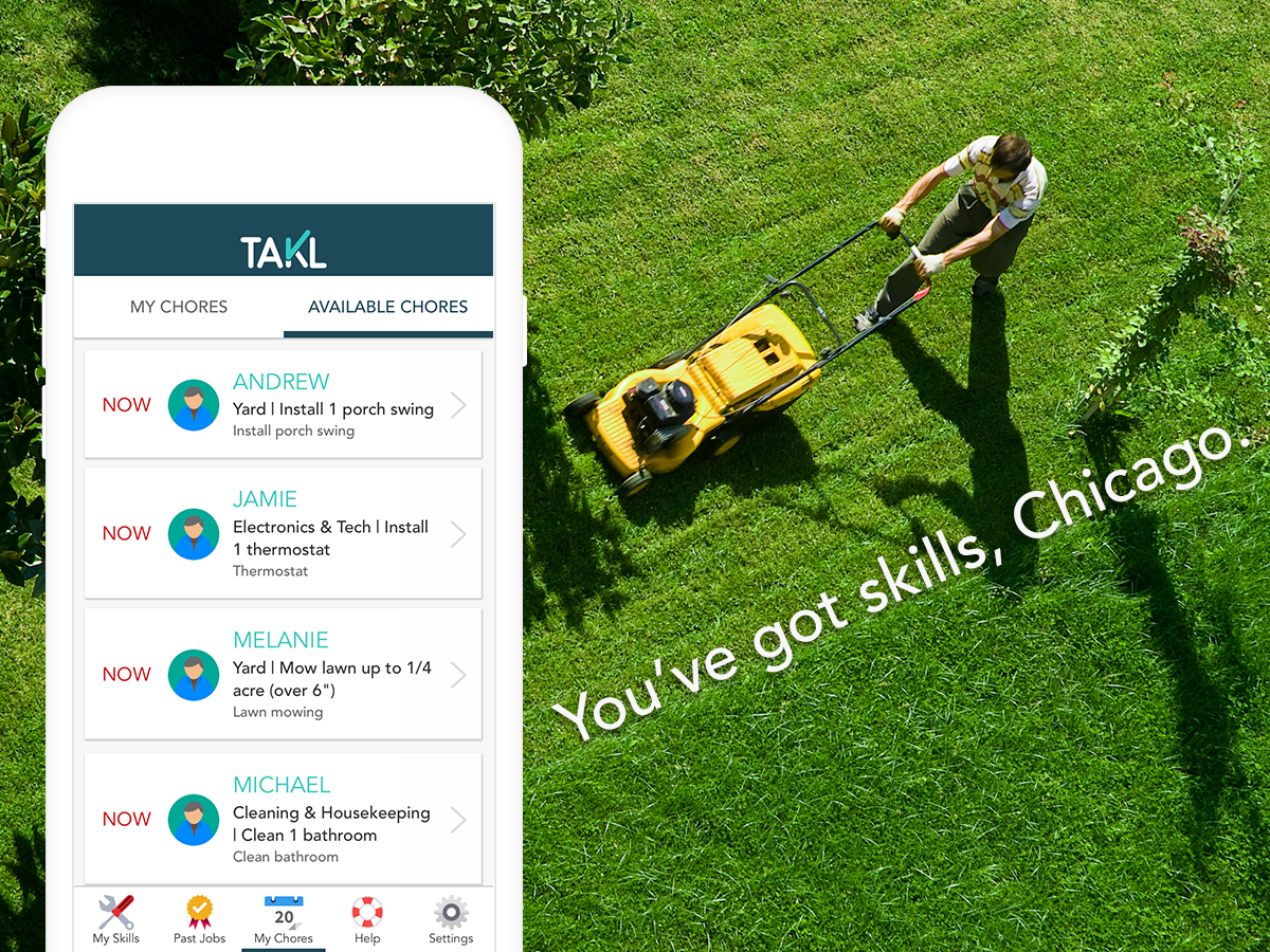 Takl allows you to have approved help at your home or office the same day for a variety of small jobs and chores.