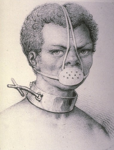 Another common practice, a wickedly human phenomenon.., this one practiced by the slaves themselves… Was eating dirt, for nourishment.., and in some cases, even in an attempted suicide. When caught, they were forced to wear "dirt-eater" masks.