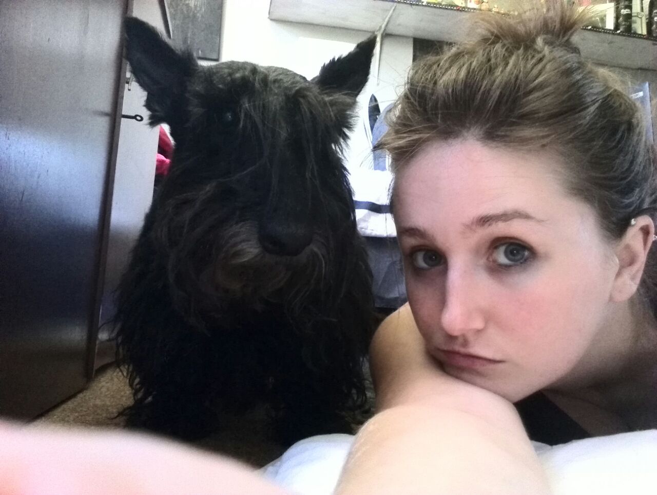 She was definitely my favourite and basically only thing I took selfies with. My favourite memories and thing I'll miss the most is getting home after a night out and then going to lie in her bed with her kissing her nonstop and how shy she'll get. The awesome thing about scotties, and probably the reason you get so many scottie themed stuff, is definitely their personality and how expressive their bodies and faces are with regards to emotion. When I stop kissing her she'll freeze and stare at me. I'll then say her name and her one back paw will be kicked out with a slight jump of excitement.