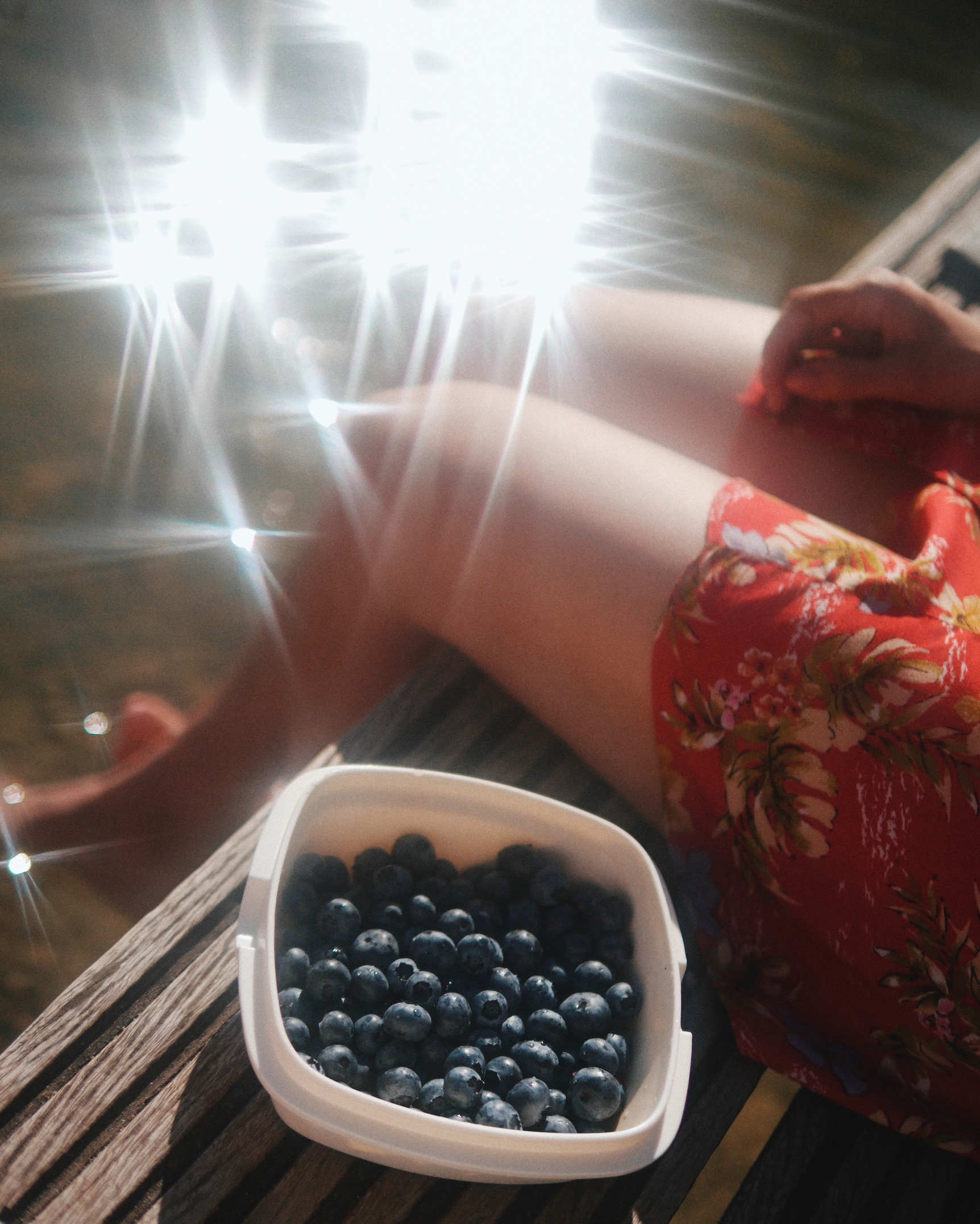 The light breeze and some blueberries refresh us from the stifling heat of the city.