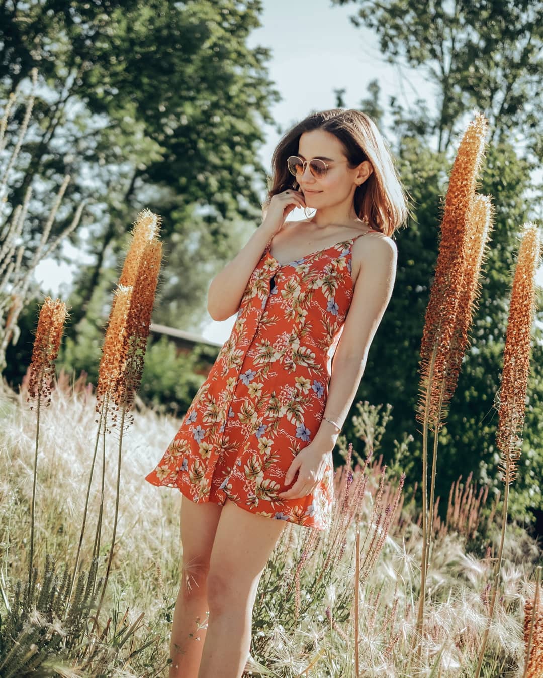 The bright colors of my summer dress - my July outfit - match my mood and the surroundings.