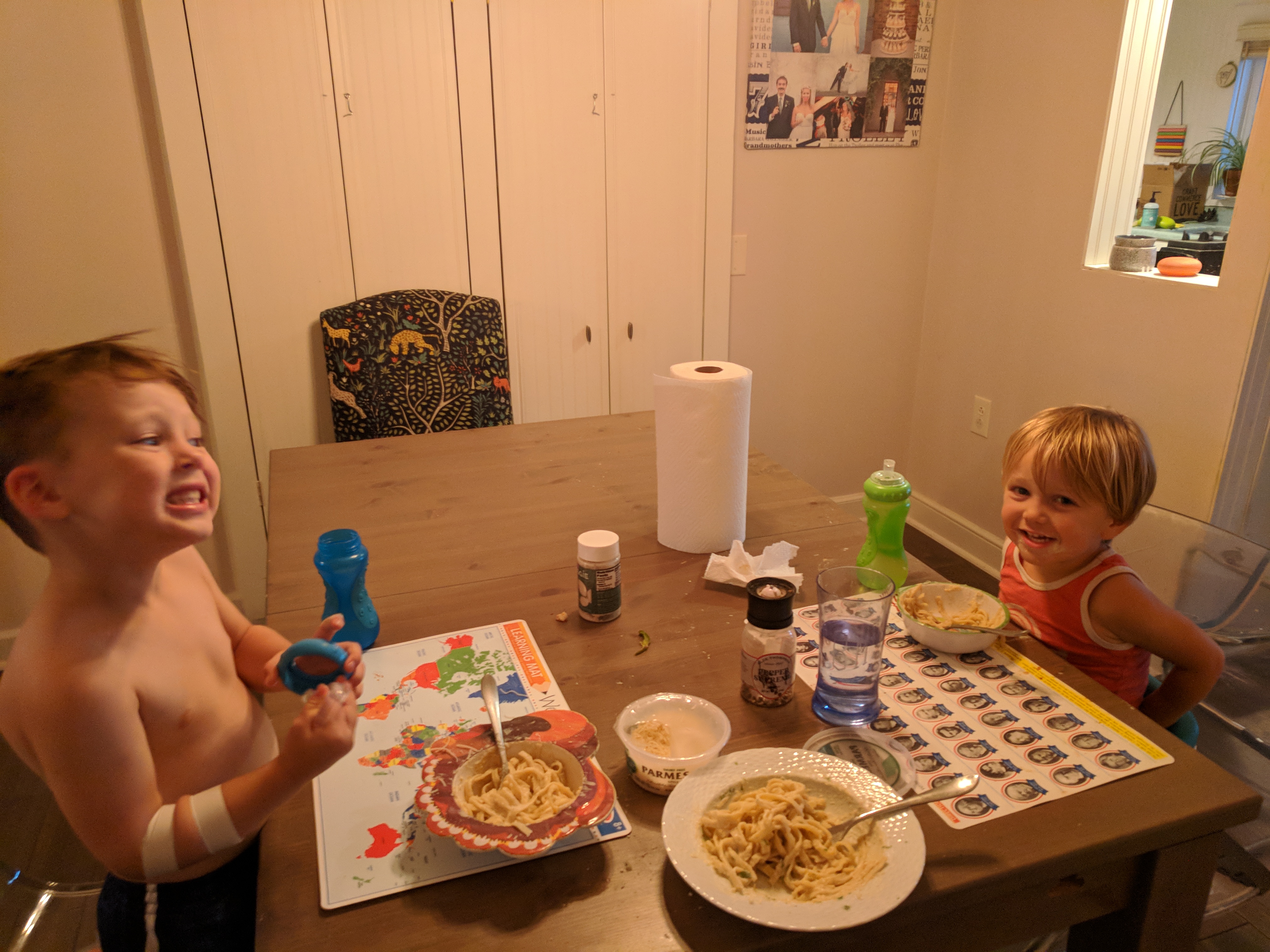 And best of all from my perspective, we made all Italian meals (my and the boys' favorite food), which the boys ate very healthy servings of.