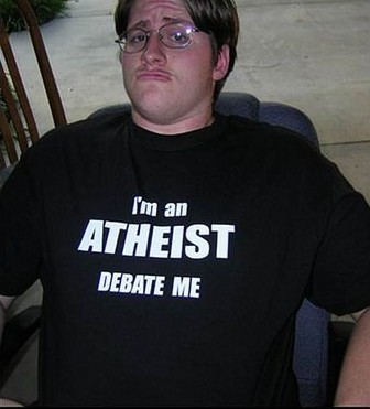 Funny that you would put someone with an atheist t-shirt; these people are usually the worst offenders. Most of those I've (most likely) correctly see that God doesn't exist. But sadly, they now devote this former religious fervor to government. And they completely refuse facts going against their socialism worship.