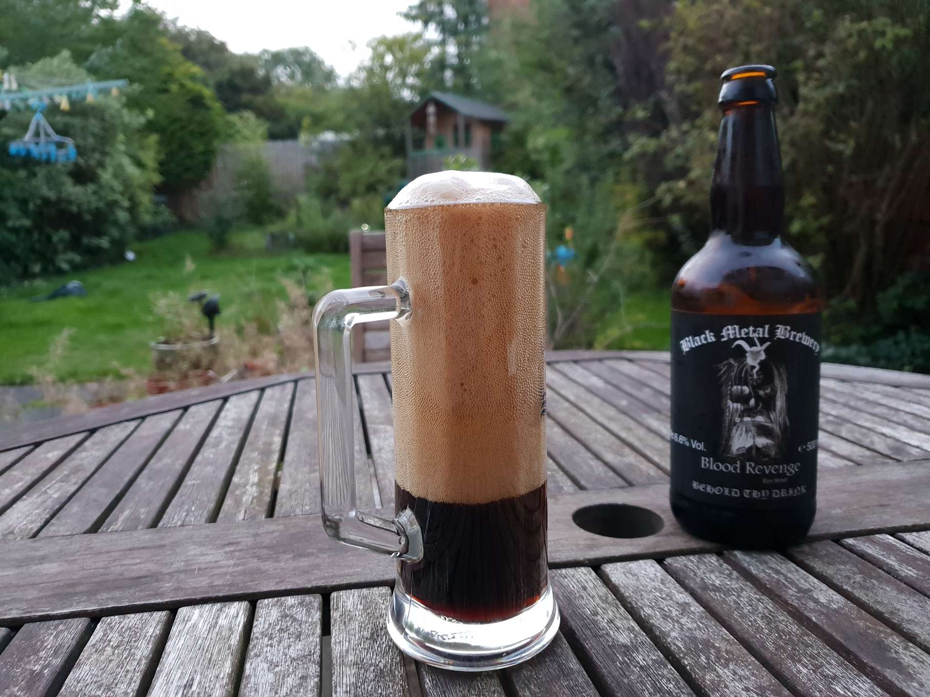 It's a frothy metal number. As black as one would expect. I can smell rye already!! Let's get tore in!!