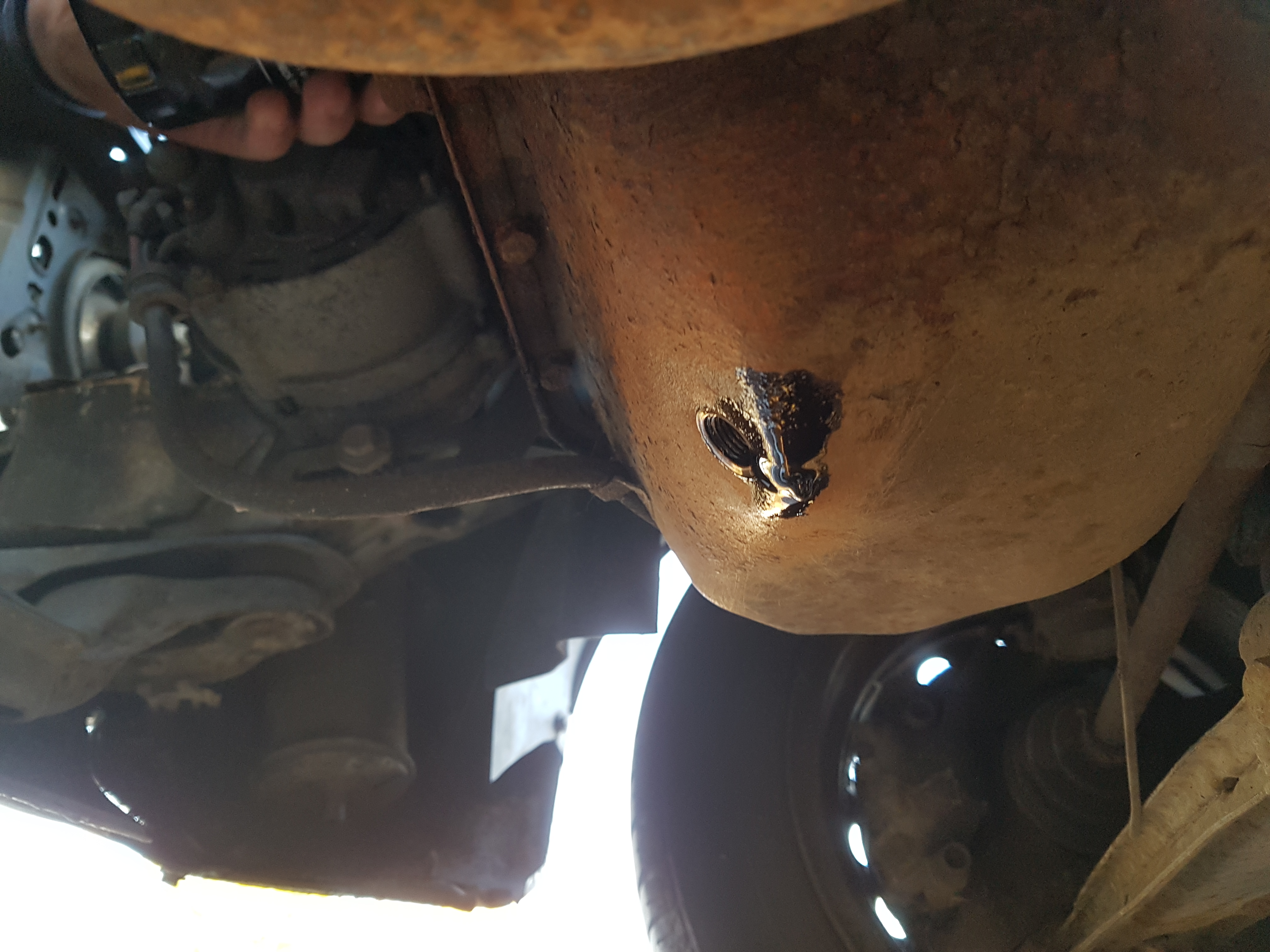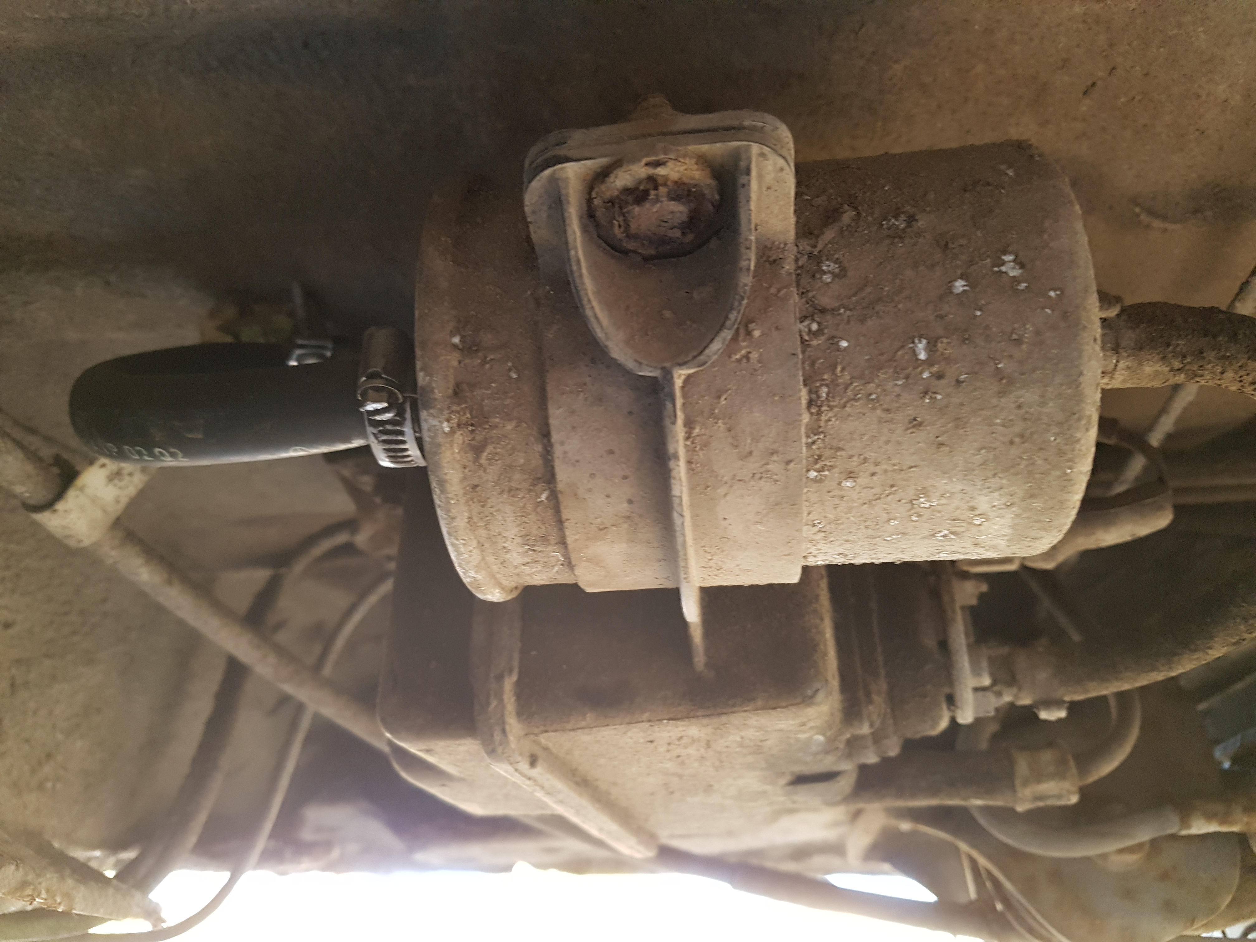 Przy tylnym kole znajduję się filtr paliwa, ale śruba jest w takim stanie, że klucz 10 jest już za duży, a 9-ka jeszcze za mała. Więc opcje jakie mi zostają to albo zaczekać aż rdza zeżre śrubę do 9-ki. Albo przeciąć ją i zastąpić nową co z pewnością uczynię w najbliższym czasie.