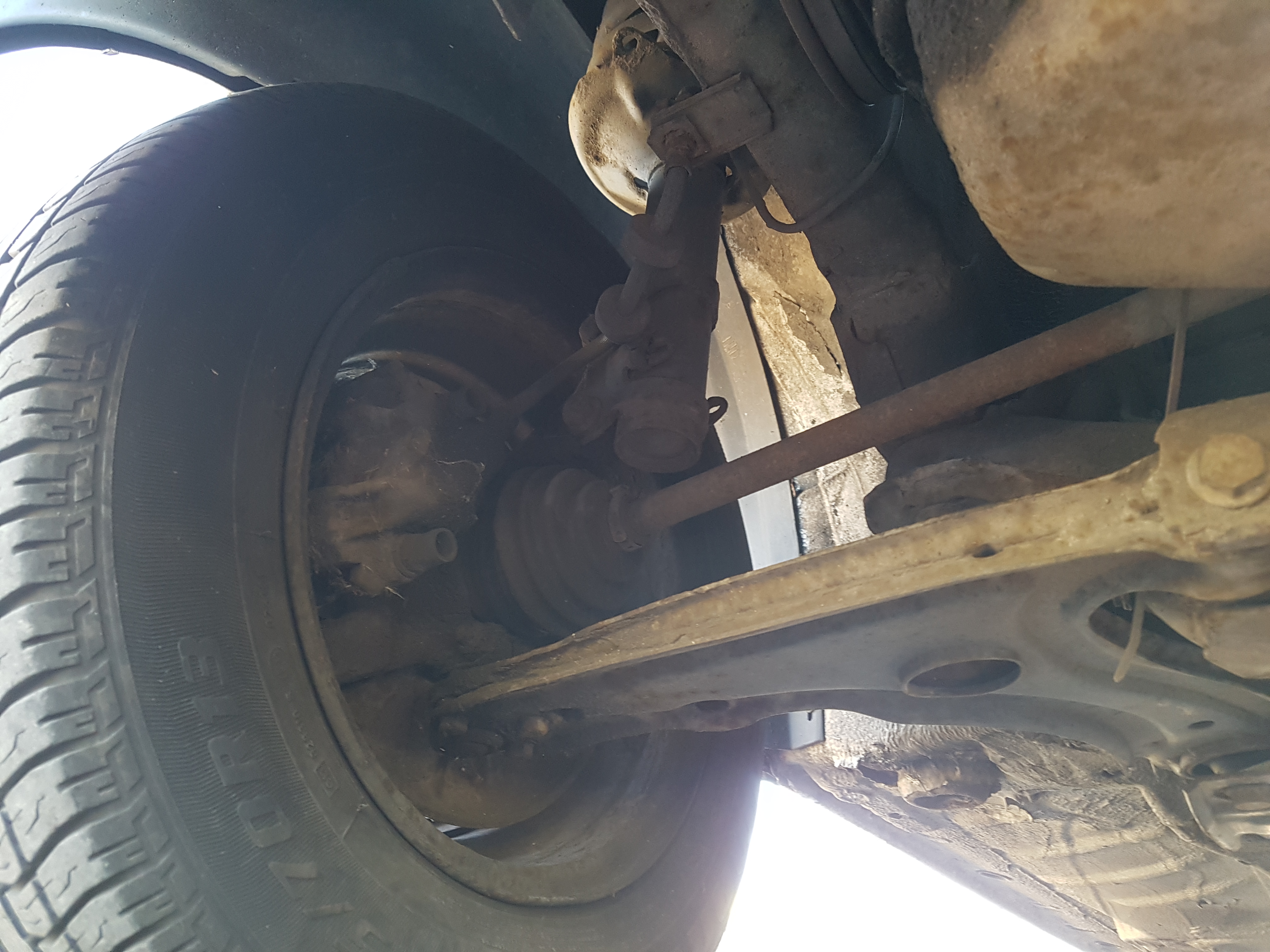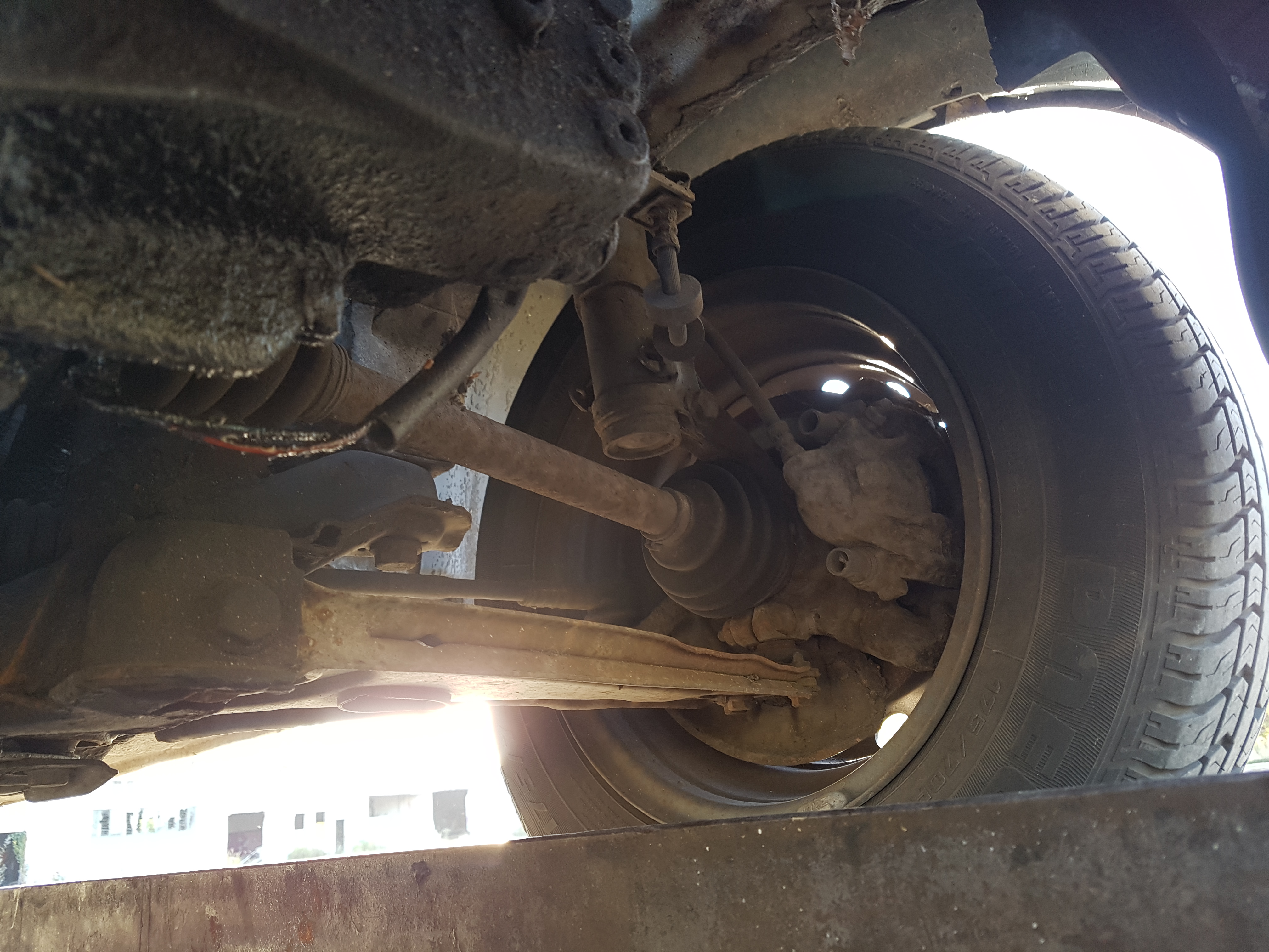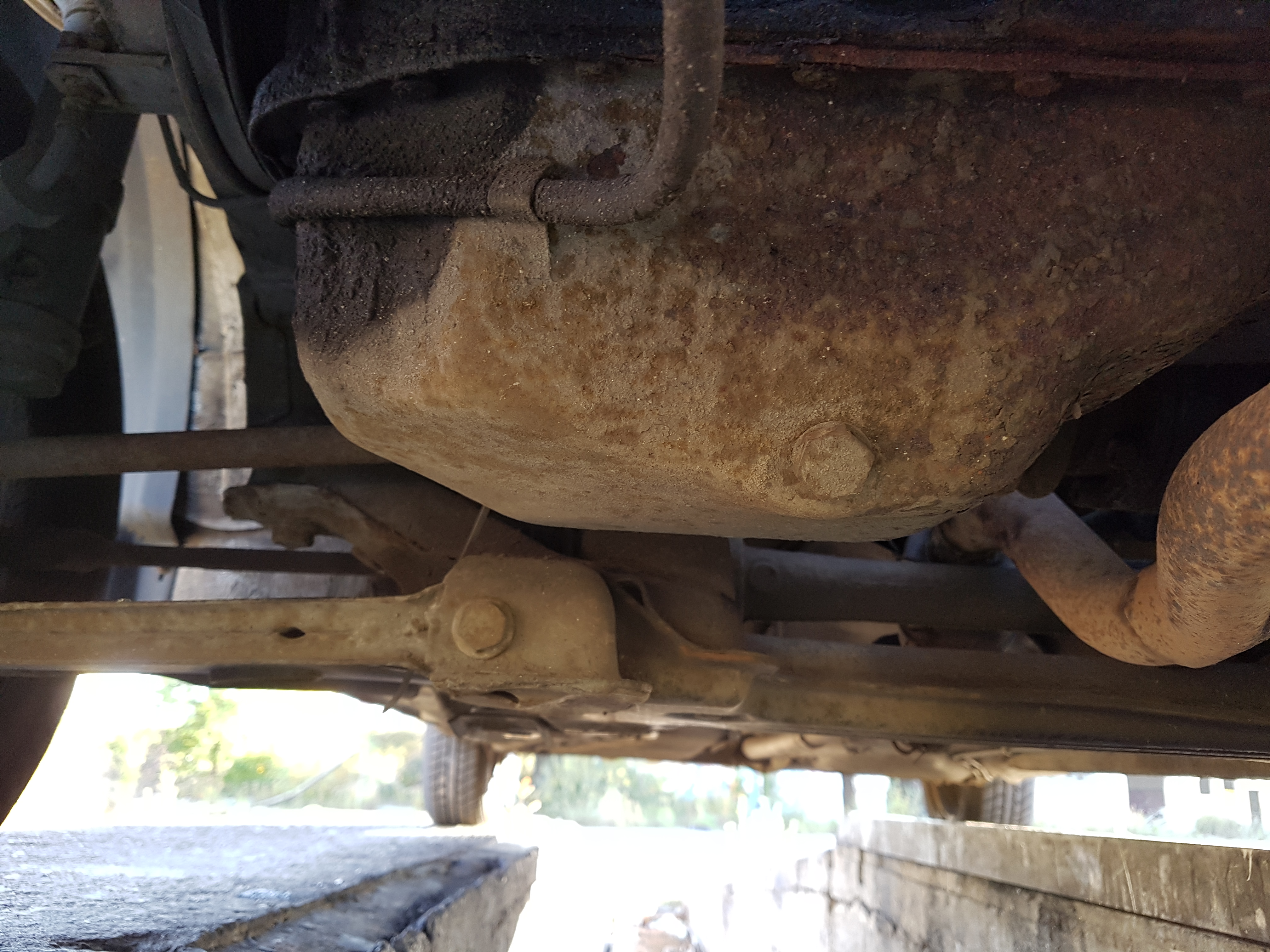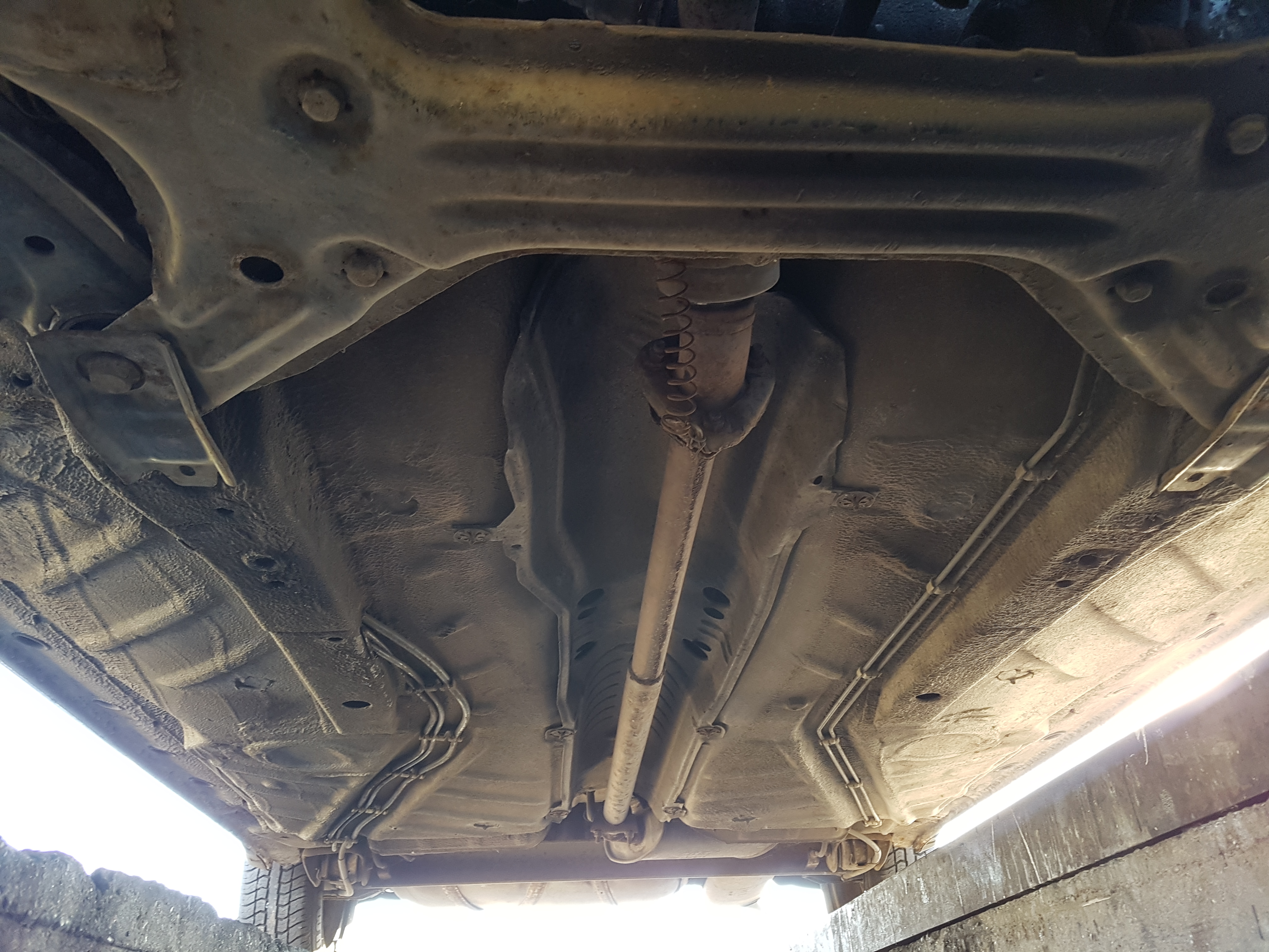 Wjechałem w końcu na najazdy i zobaczyłem w pełnej okrasie swoją brykę od spodu. Zawieszenie pordzewiałe i pełne luzów, ale blacharka zdrowiutka aż miło. Jedynym skorodowanym lekko miejscem jest punkt zaczepienia lewarka od strony kierowcy, ale już szukam kogoś kto mi to pospawa. Ognisko nie jest duże ale lepiej zabić rdzę w zarodku.