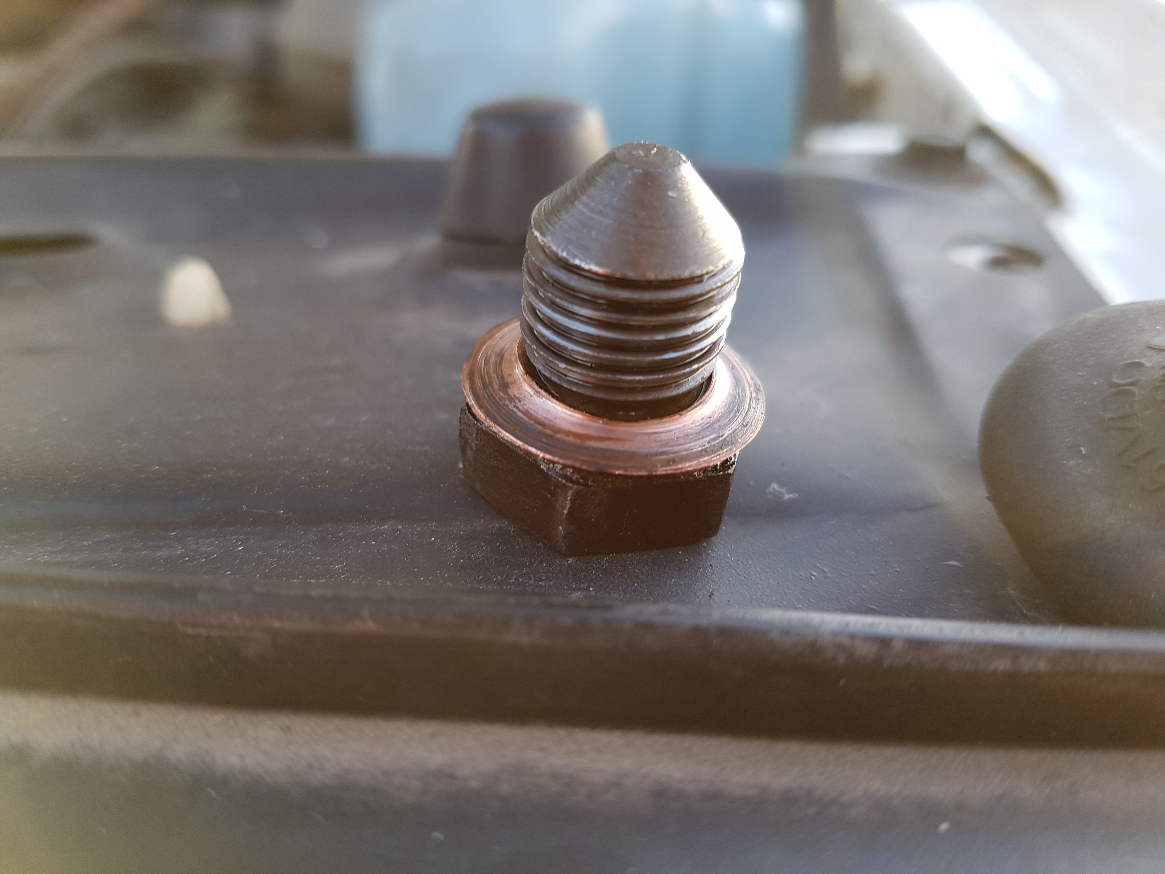 Gdy już cały olej ściekł nam do naczynia zabieramy się za wkręcenie z powrotem korka spustowego, tu proszę z wyczuciem aby nie przekręcić. Po dokręceniu osuszamy korek i miejsce wokół tak aby ewentualnie później sprawdzić czy nam nie przecieka (sprawdzałem już po kilku dniach i u mnie nie kapie, uff).