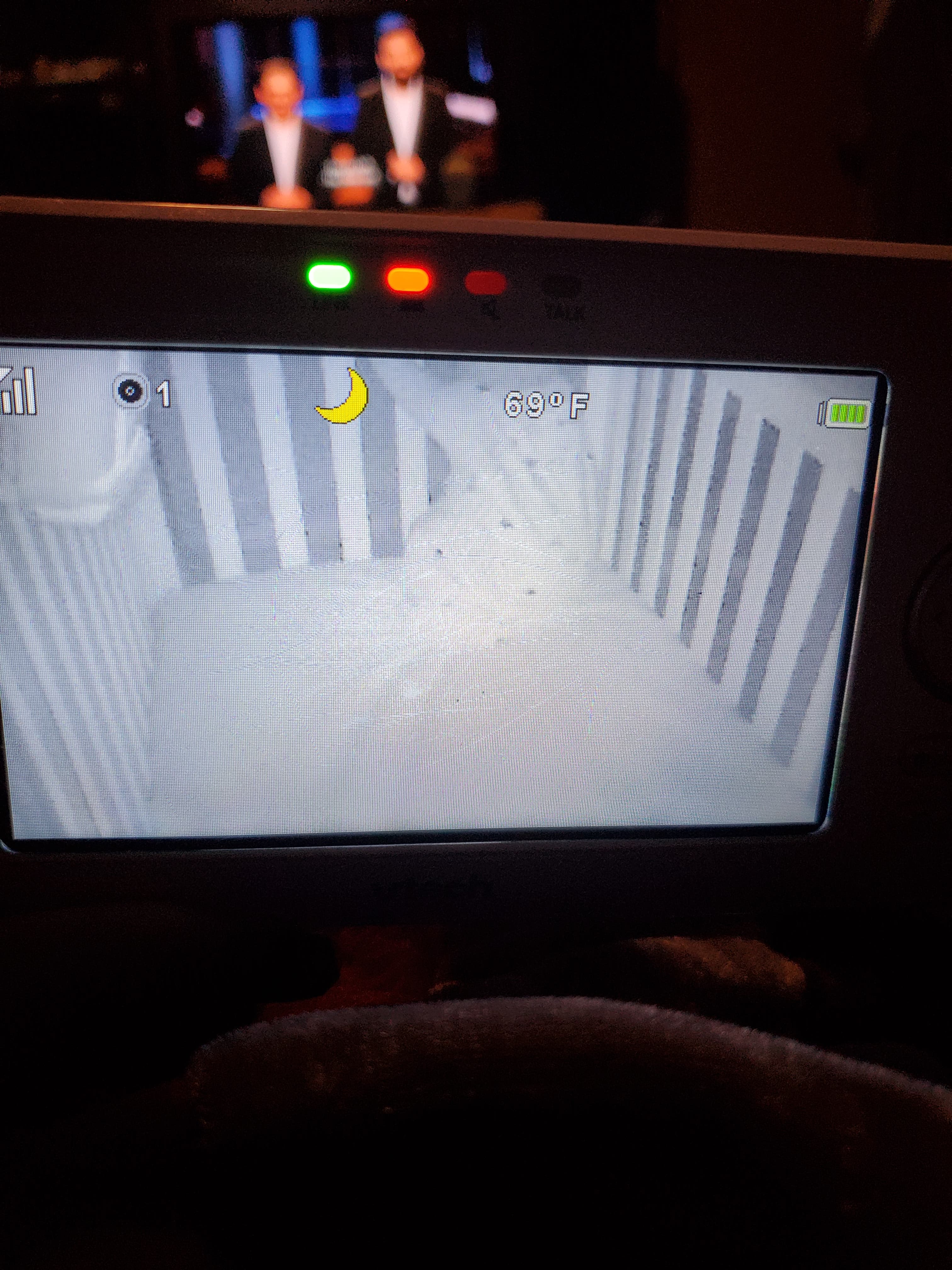 I think she knew something was up... I normally have ZERO problem putting her down for the 1st time of the night, I rock her on the rocking chair while feeding her, she falls asleep and then I was going to start the training when she woke up again....
