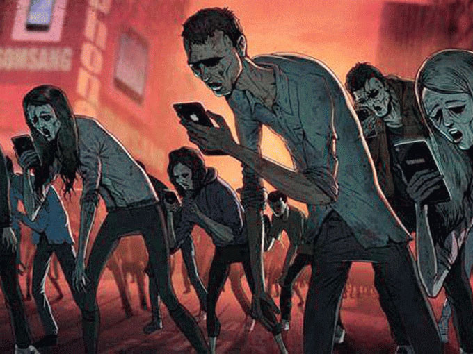 Oh and there's another phenomenon of smombies. What are smombies? Smartphone Zombies! They walk along staring at their smartphone oblivious to their surroundings. This is what they look like....