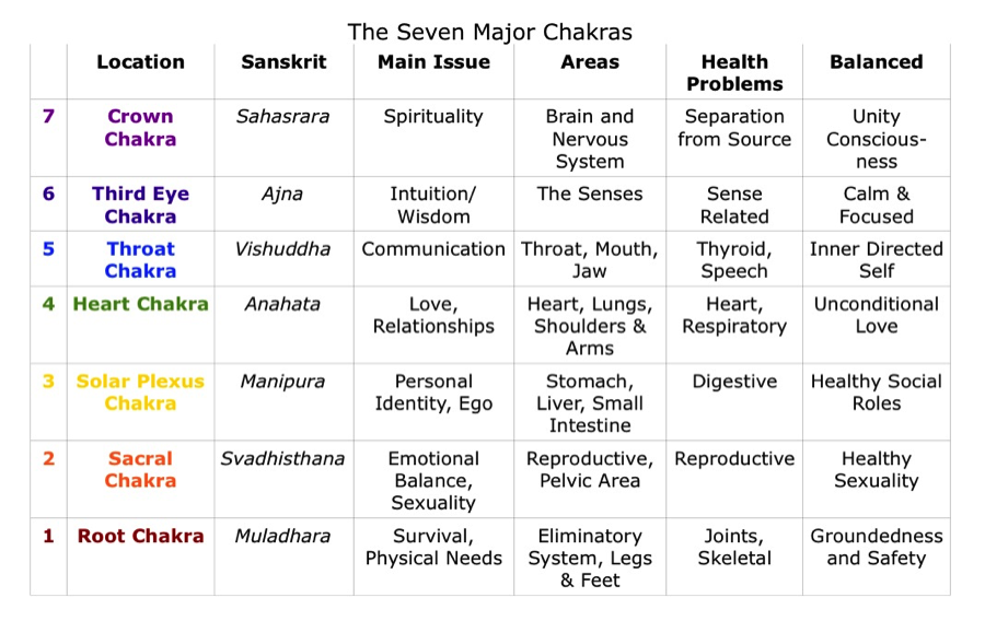 Chakras, in accordance with their location on the human body, are controlled by certain organs and systems, supplying them with energy (and information) from outside and discharging the waste energy (and information) of these organs outside.