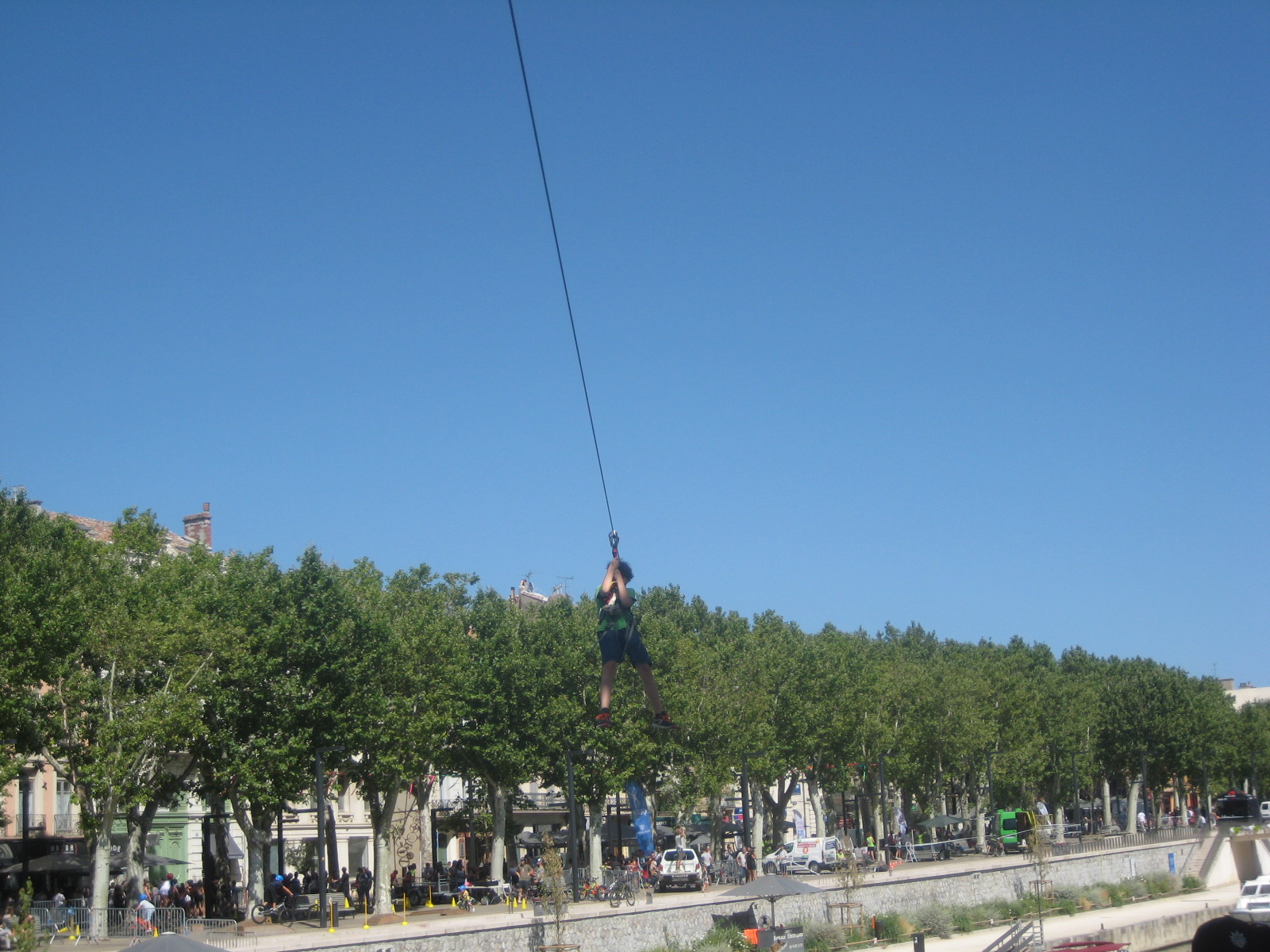 A tyrolienne from one side of the canal du Robin to the other side