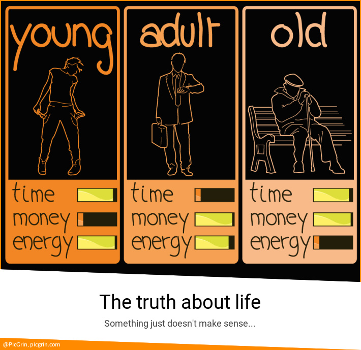 In old age usually everyone have money and have extra time to do a lot of things but in this age dont have energy to do. It is fact of life.