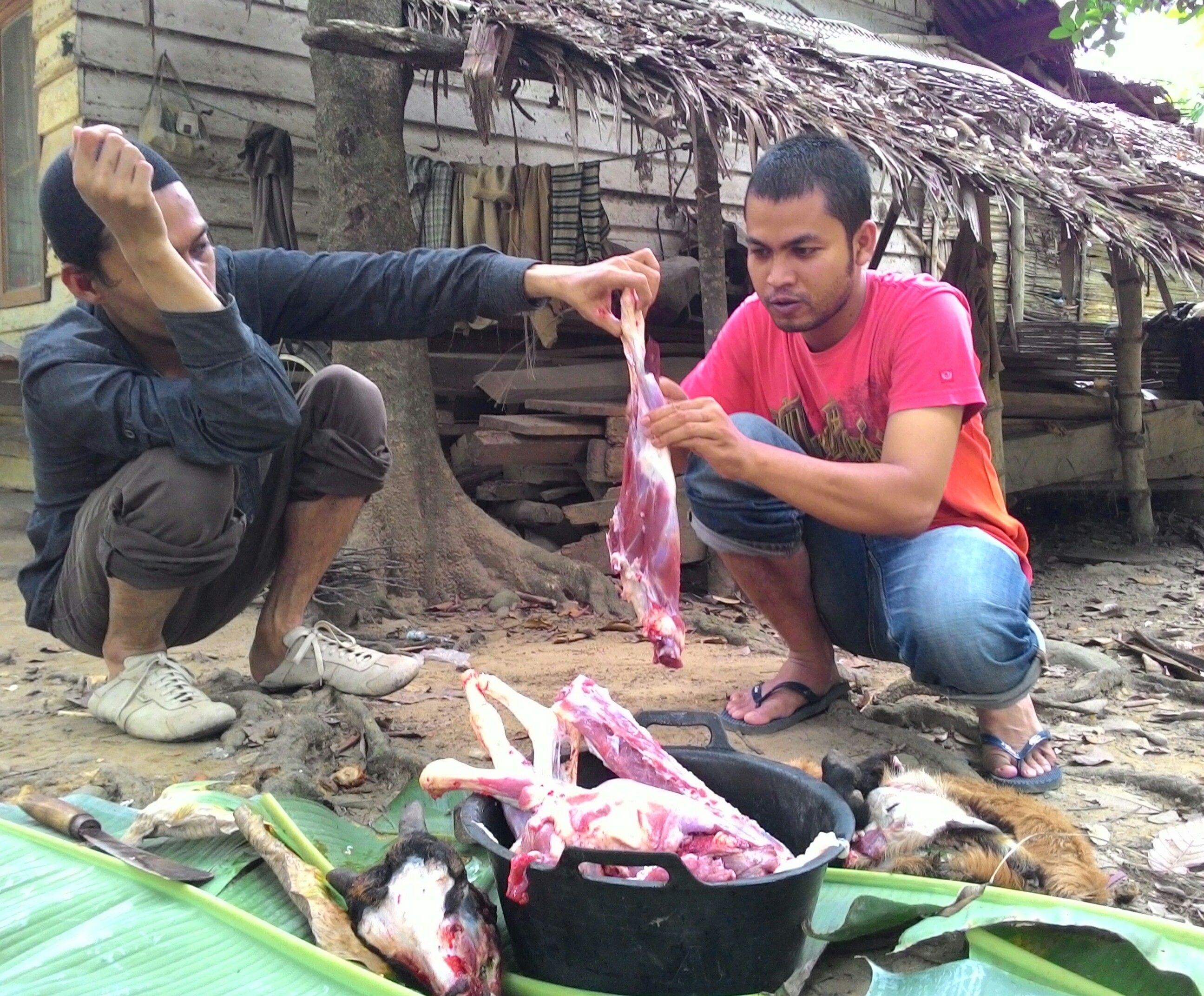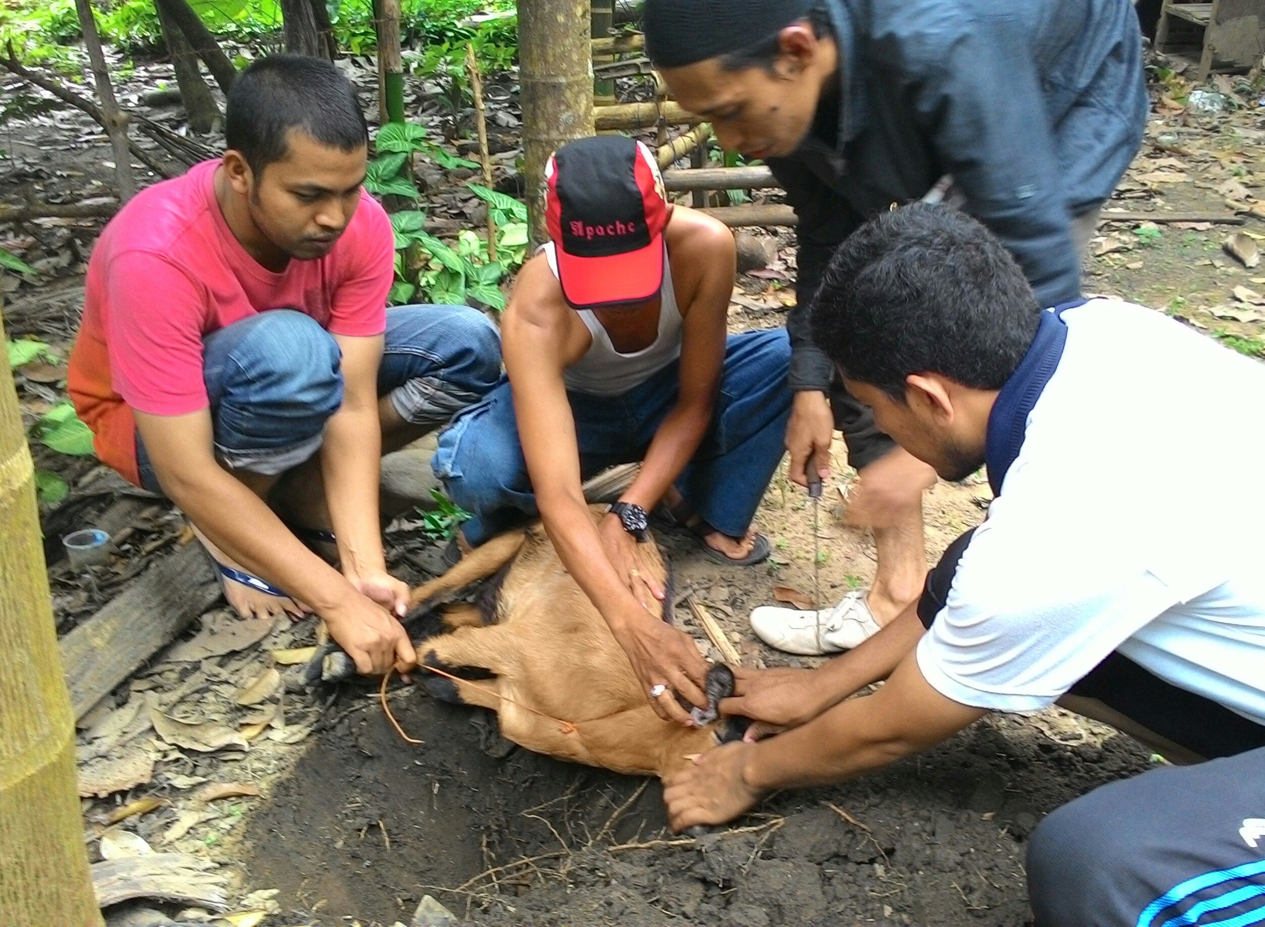 Dear steemian, today i want to share you about our activities on sunday. These are some steps in slaughter a goat to cook.