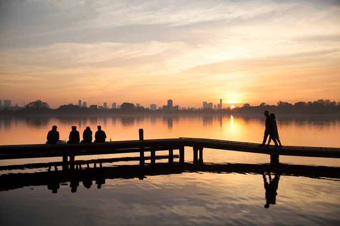 At that time I was looking over the lake, it had a little fog above it and in the distance over the lake I could see the city of Rotterdam. Everyone still being asleep.