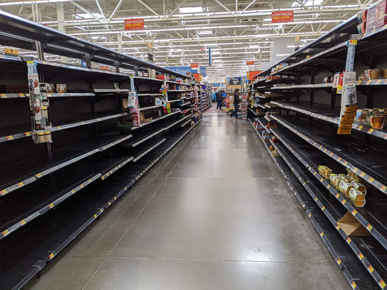 This is a shot taken today of empty racks at one of the local Walmarts. All canned goods are gone.