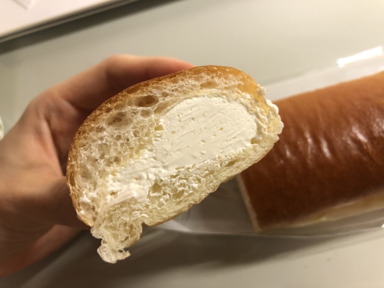 단면이에요. 이렇게만 보면 크림 별로 안 많은거 아닌가 싶으실 수도 있지만!! 아닙니다. 끝부분이라 요만큼밖에 안 들어 있어 보이는 거고, 가운데로 가면 크림 더 많아요.