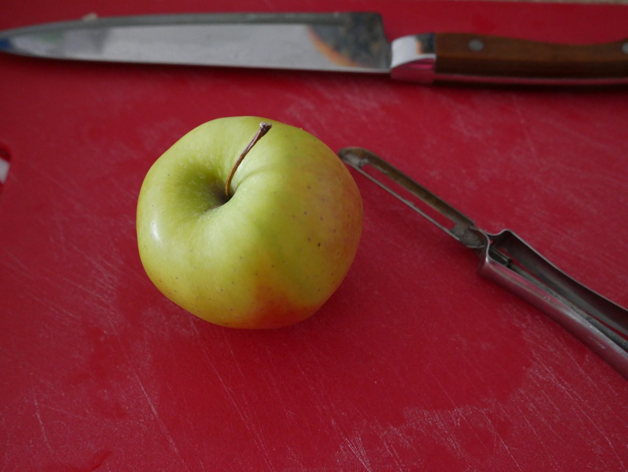 So I spent time in the kitchen. I decided to make a simple side dish. Start with a peeled and sliced apple.
