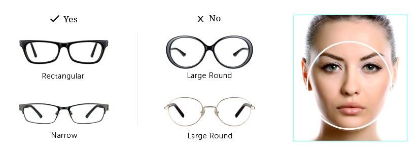 2- Circular face: For rounded faces, it's best to choose rectangular and cornered frames to show your face stretched out.