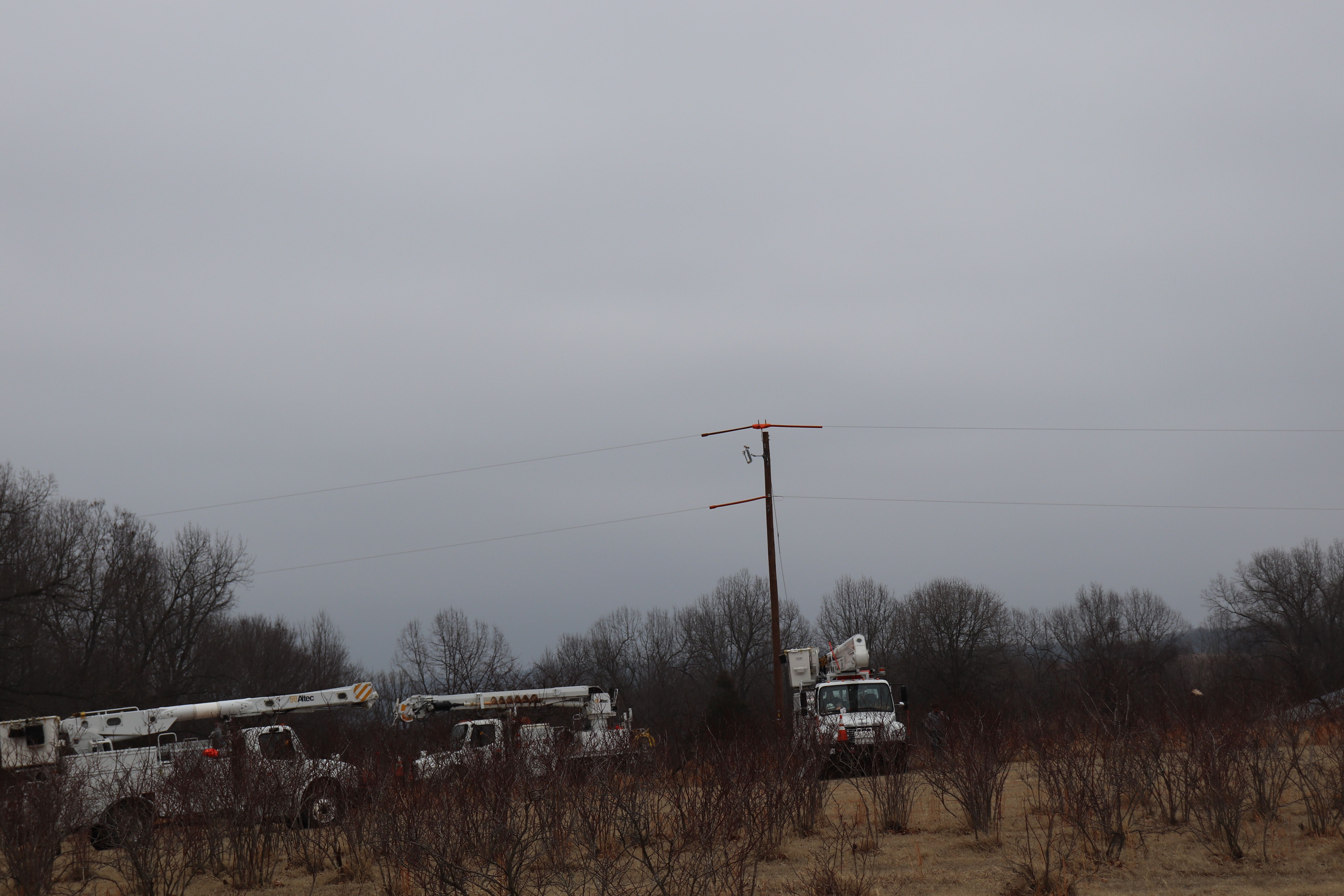 Here you can see them erecting the power pole on the property of @jaguarlife and @ladyjag. This is almost directly across the street from our driveway. After the power lines cross the street and hit this pole, the electricity then goes underground up to their house.
