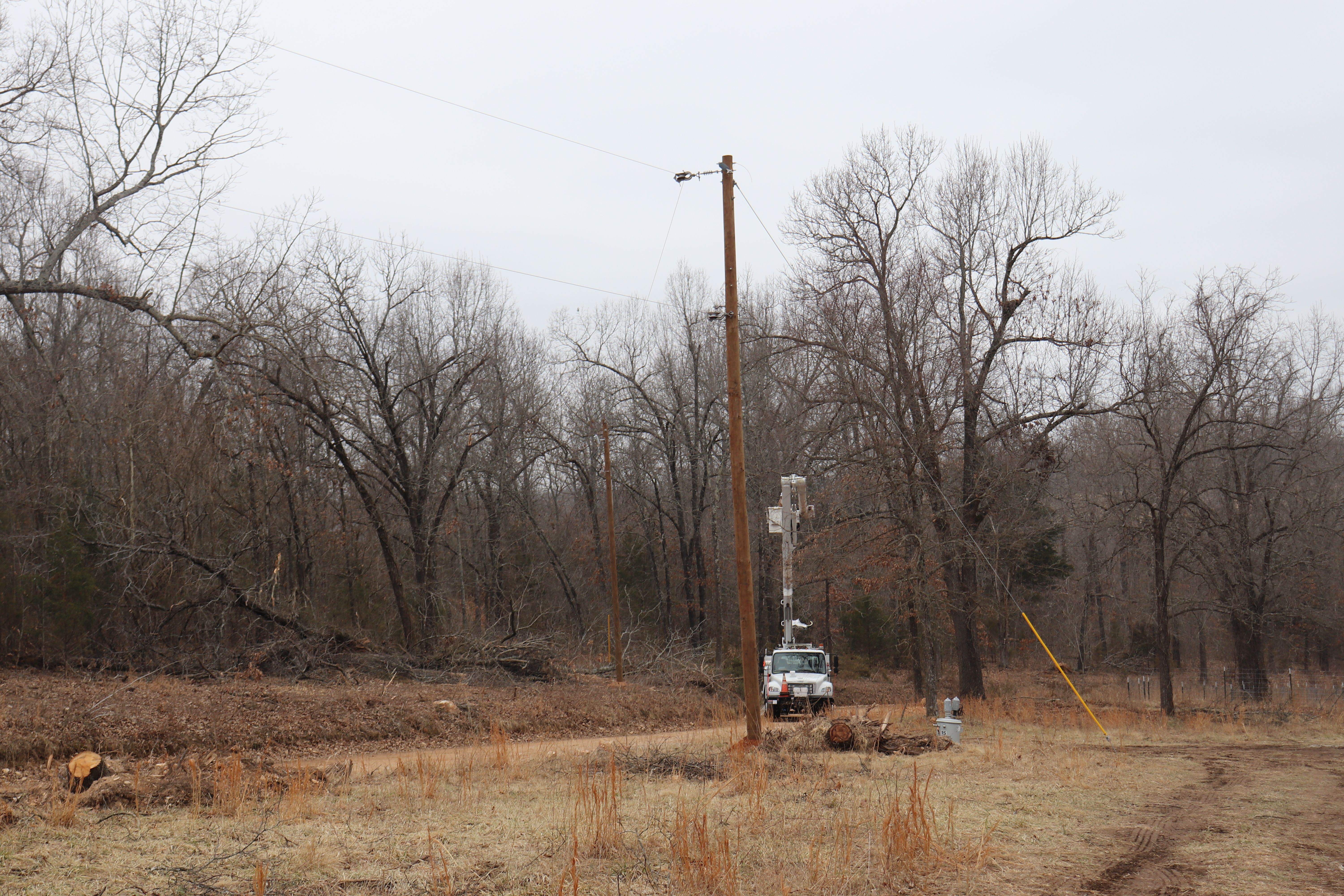 It was sixteen days ago that we were preparing for power by getting our small pole set up and ready to go. Now, the power company came in and did their job, so we are good to go. We still have to test it out, but it looks like we've got power down on the land!