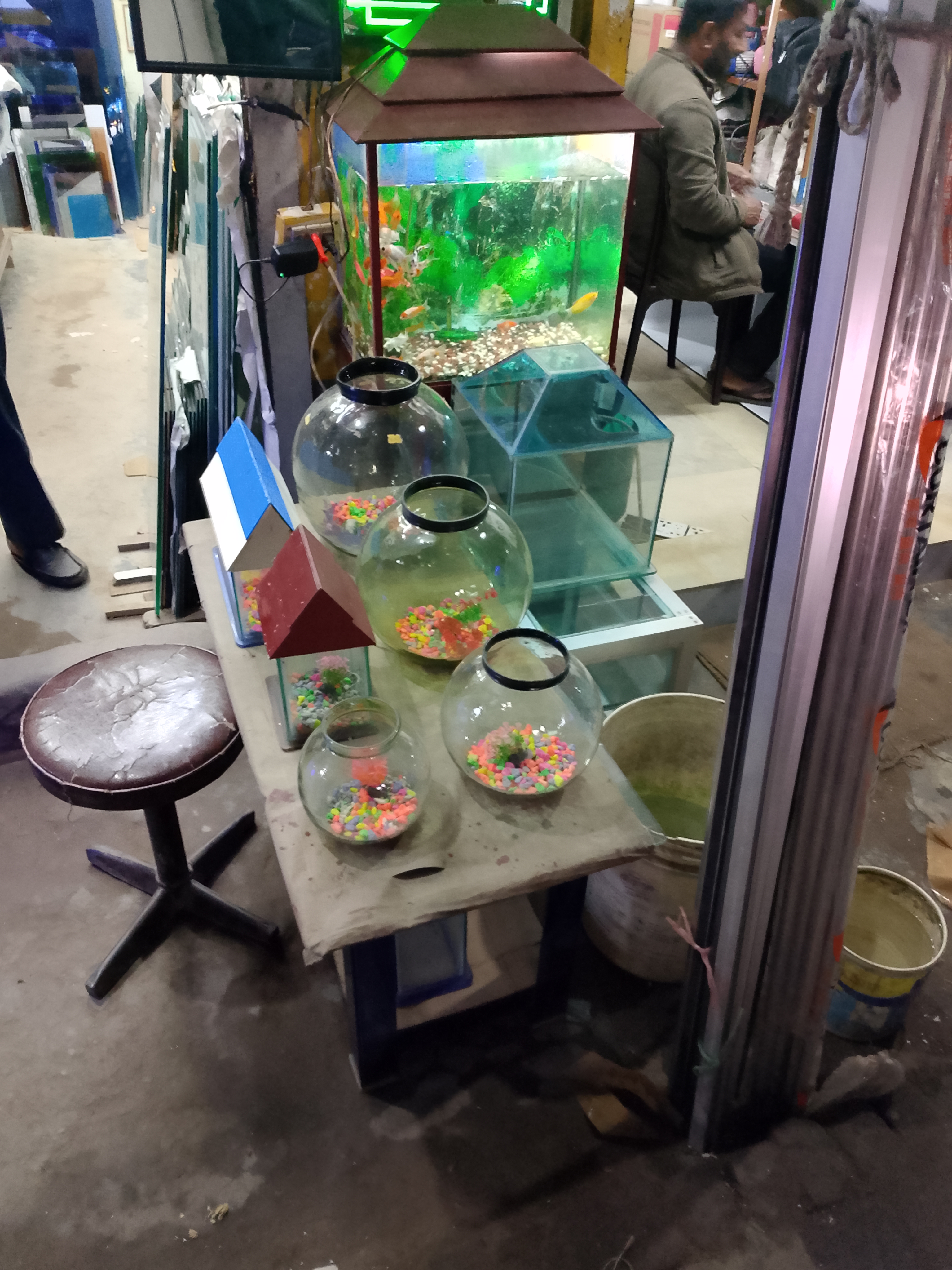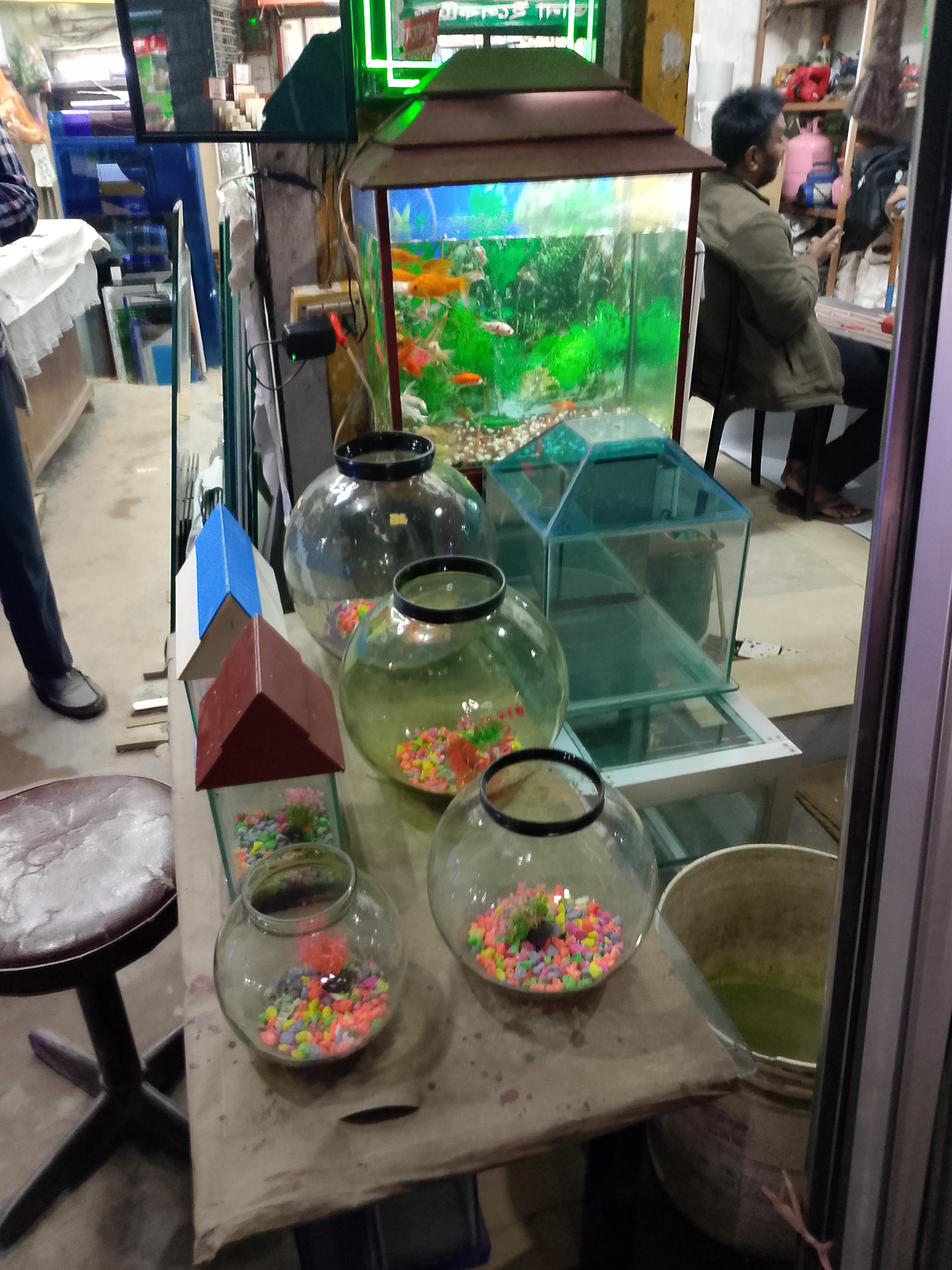 Instead, there were glass-made items like aromenium, where you can cultivate fish inside. My friend wanted to buy these, but we decided not to take them as we weren't sure how to transport them home. Afterward, we really liked the items, and we took some photos of them. I am sharing those photos with you.