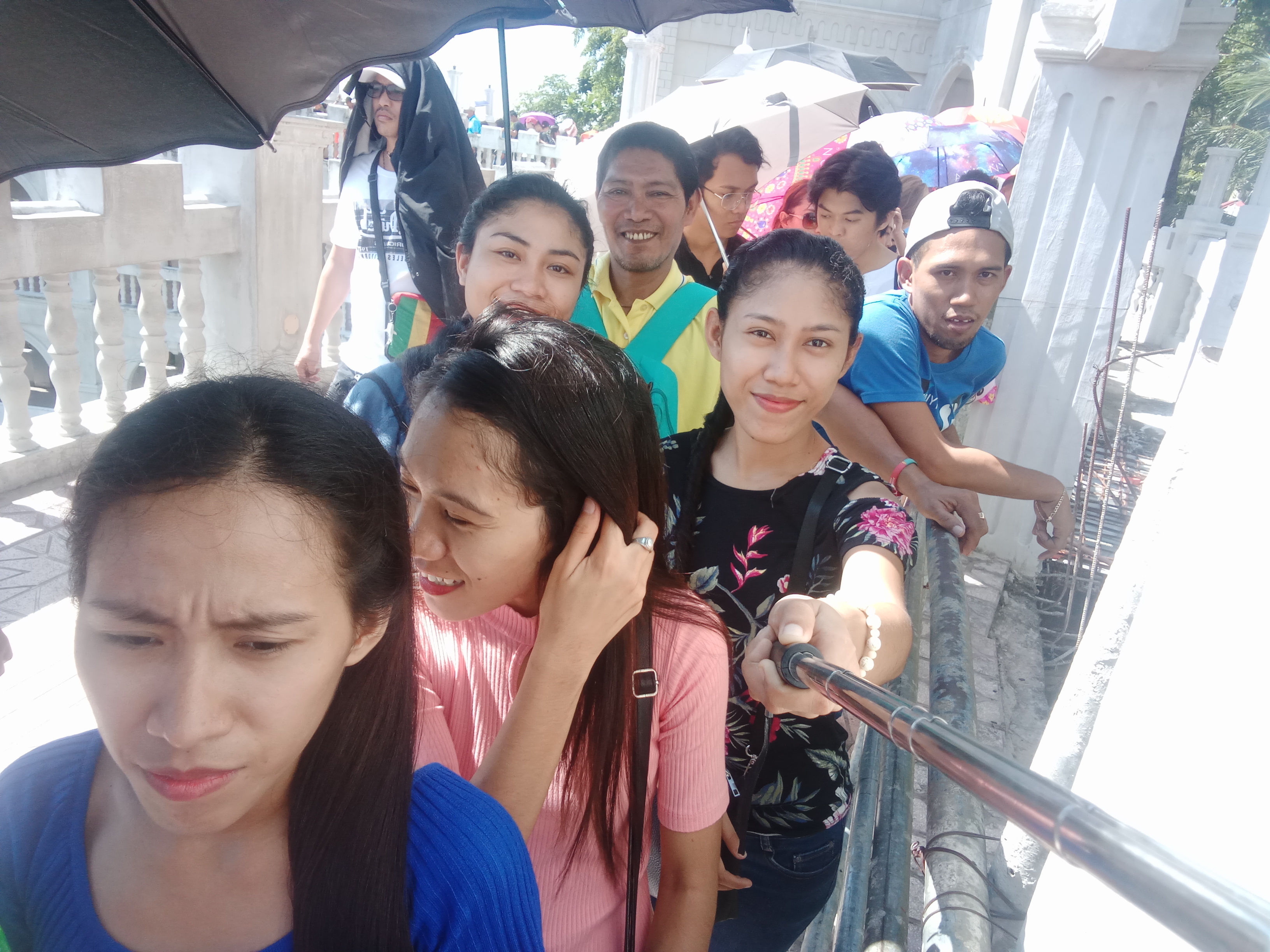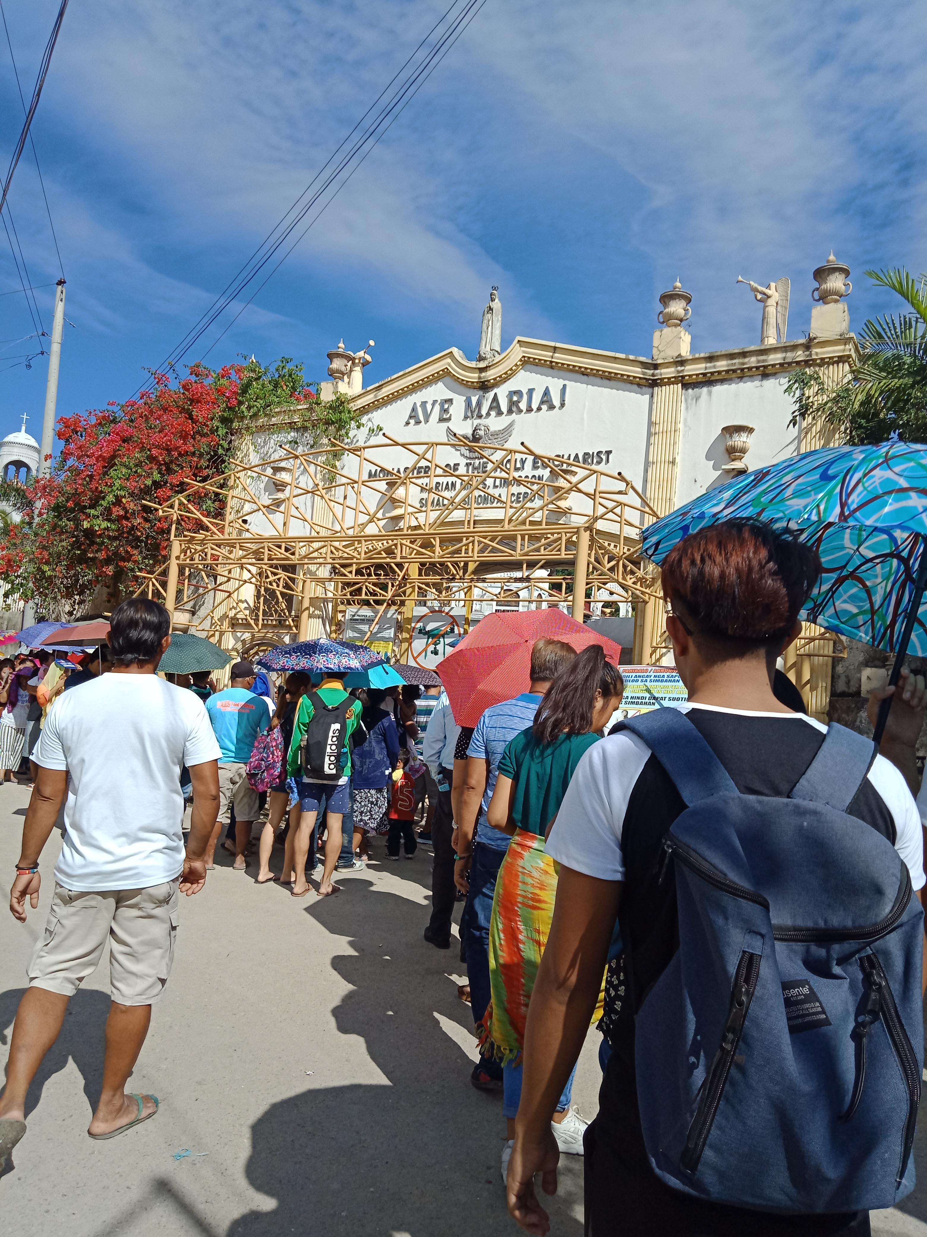 We arrived at 8:30 in the morning, and the line of simala was very long because the guard of the church need to check thee simala.
