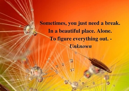 Sometimes, you just need a break. In a beautiful place, alone, to figure everything out. - Unknown