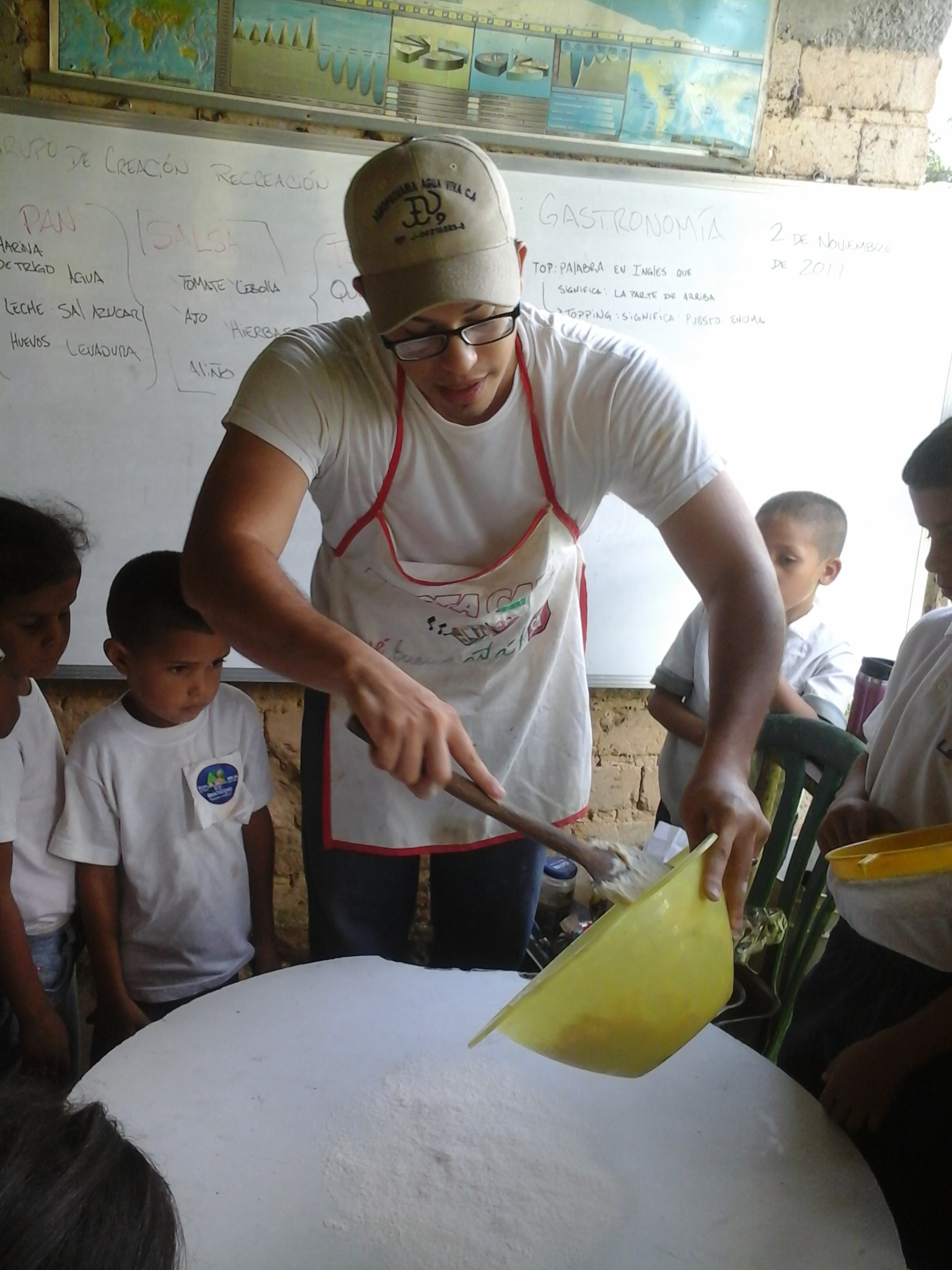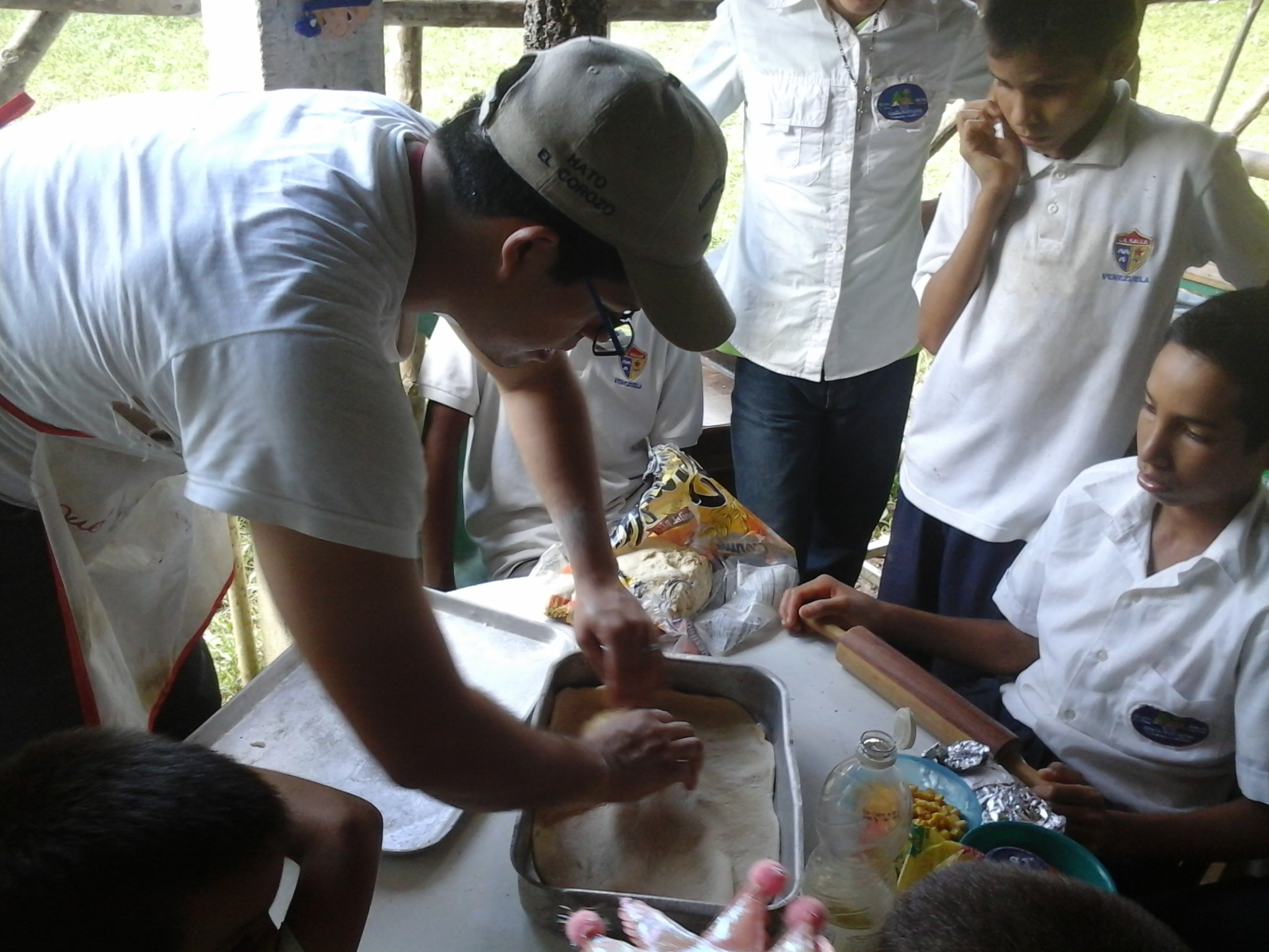 They pay really good attention and show enthusiasm, and after a brief theoretical explanation on the whiteboard, we put hands on the dough.
