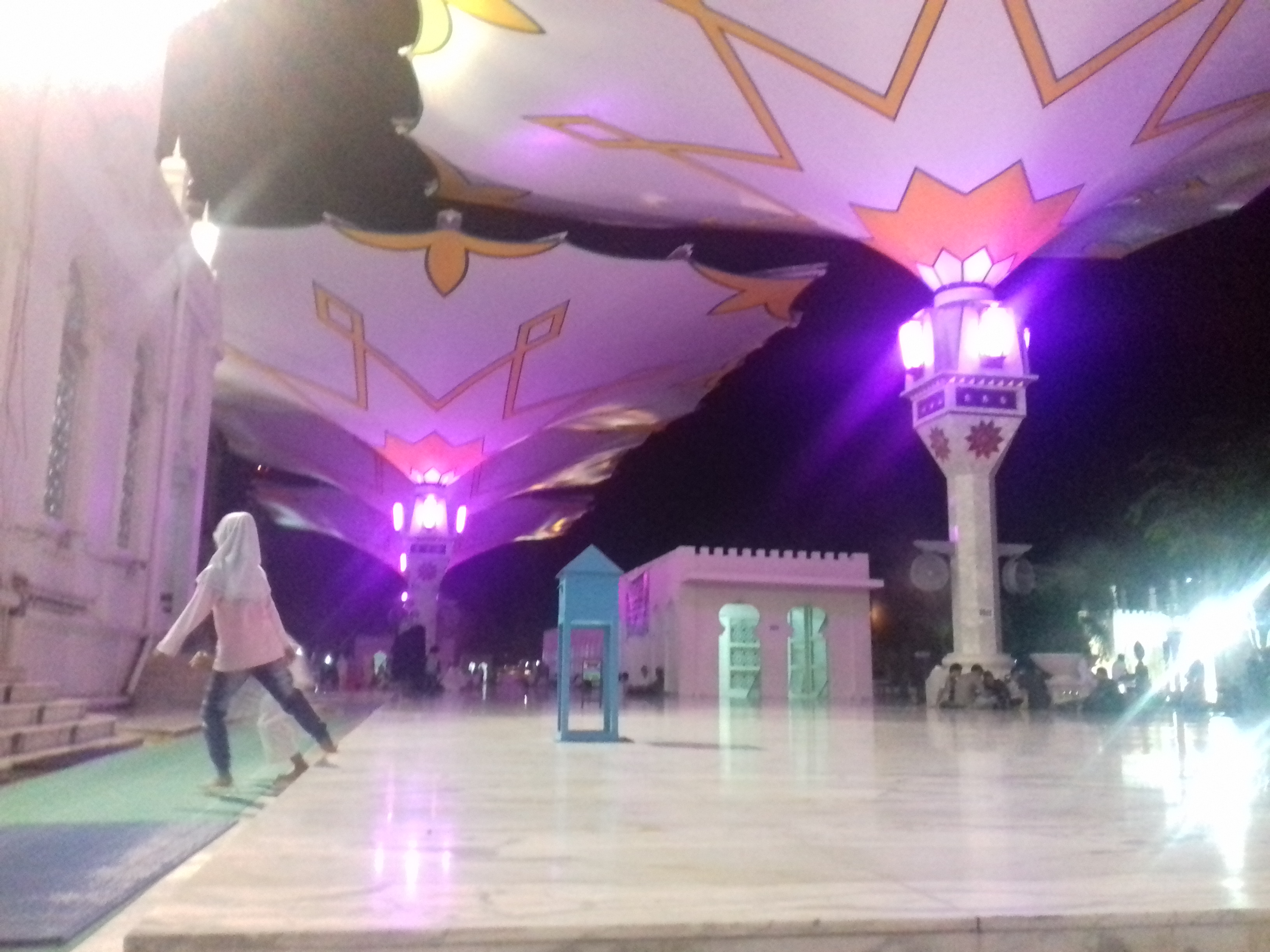 Melihat saja sudah membuat kita tenang. Konon lagi sempat salat di dalam Masjid Raya Baiurrahman, Banda merupakan satu ketenangan. Desainnya yang indah ditemani lampu yang warna-warni.