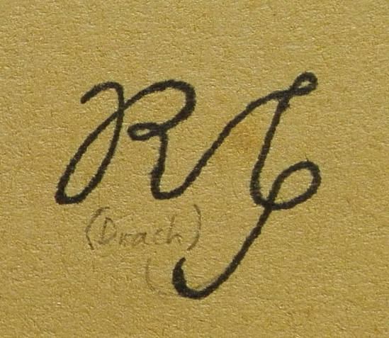 Next: the signature that was only used onceas far as I know; it appears in a surface decorated with a pencil on glass in the triangular chess "Drach" (the story of which I now have to stifle). Again a little more ornate, almost in the style of the 2nd signature (first on the folder); some importance removed from the M and a little more importance given to the S.