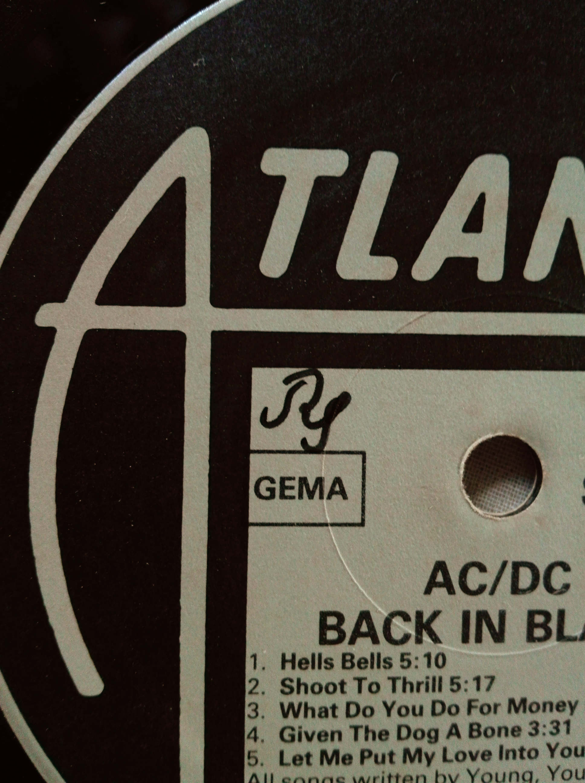 As a teenager I did not give much importance to my second name (Michael), so that my first signature was only composed of the initials R (Rudolf) and S (Schmid). I can only roughly estimate when it came into being, it could have been about my fourteenth year of life. At that time my family had settled down in their own property and each of us three children got a private room. Mine was soon "decorated" with a rather screaming, multicolored painting and I soon began to be interested in electronics (= disassembling TVs), which quite quickly led me to pull a few old radios out of the bulky waste. One came from our neighbours and at some point I used it to amplify the sound signal from a self-made record player (using "Fischer-Technik"). The photo shows the signature on the first record I ever owned and since it is signed, like all other records in my collection, on the inner cover and on the disc itself, i.e. its label, I conclude from that the signature must have originated around this time. It may have been a little later, because I could not deny having signed through the first small record collection at a certain time. Anyway, this was the signature made of R and S and with a little imagination one can recognize these initials, in handwriting (in contrast to print), although it is written a little bit ugly here.