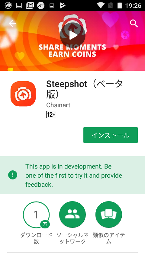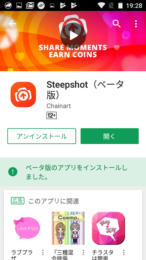 Google Playで「steepsho」と検索すると、赤いアイコンが表示されるのでタップします。