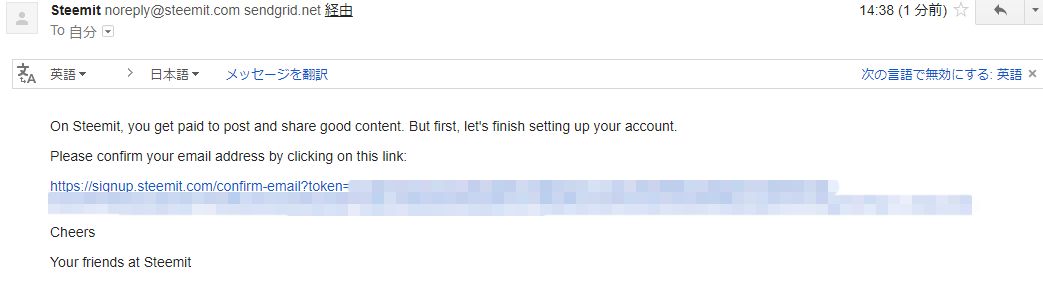 登録したメールアドレスに認証用メールが届きますので、リンクをクリックします。
